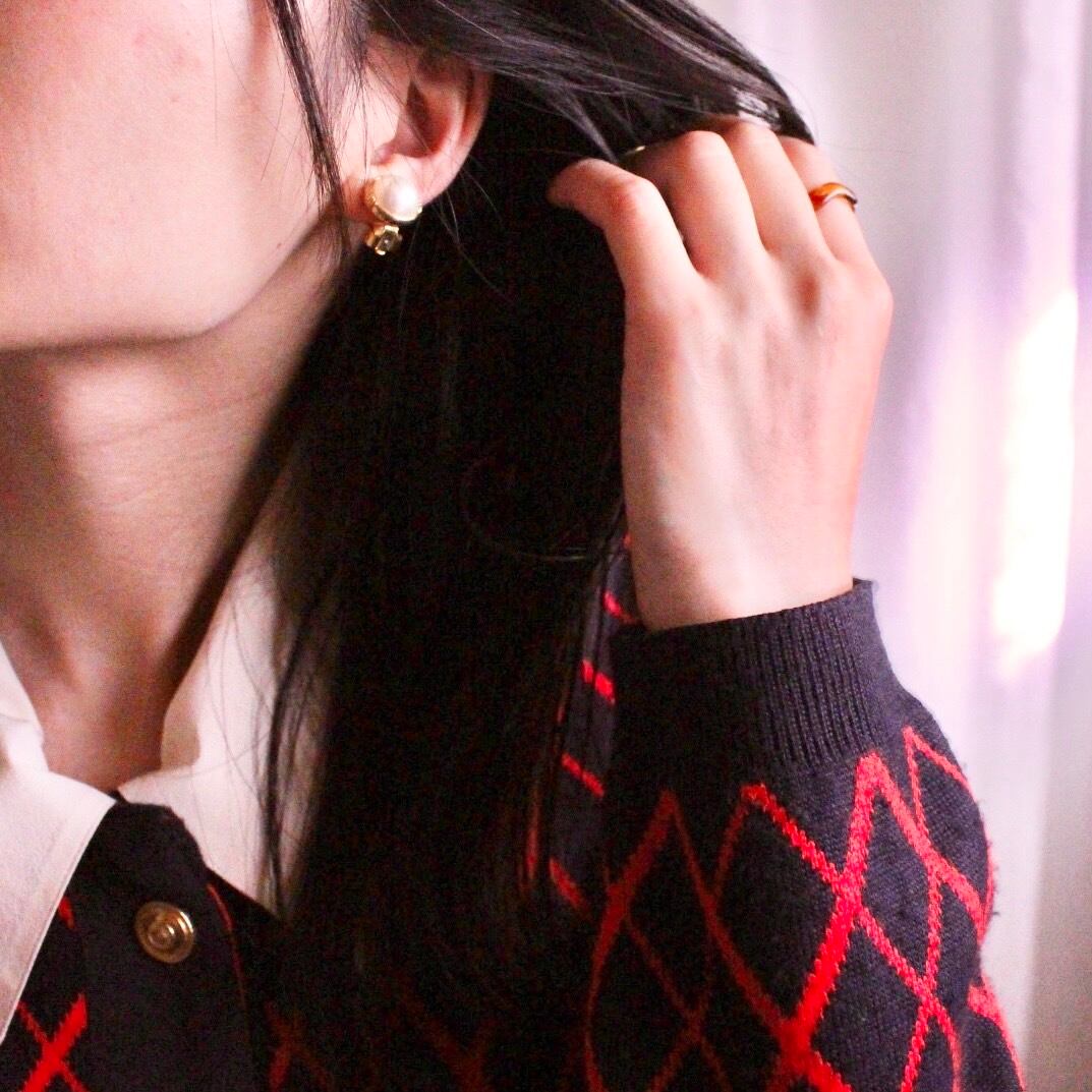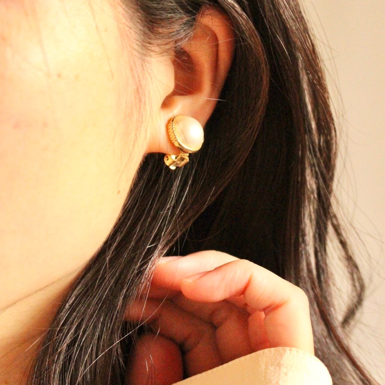 シンプルな中にも細かなデザインが光るパールイヤリング。