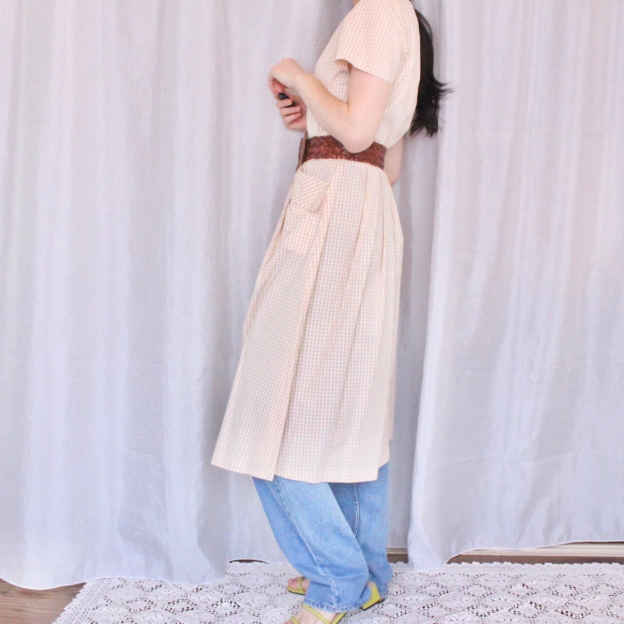 薄いベージュ色の細かいブロックチェックが爽やか。