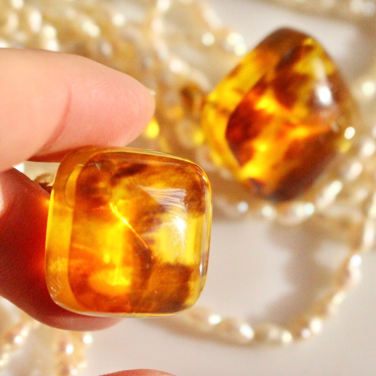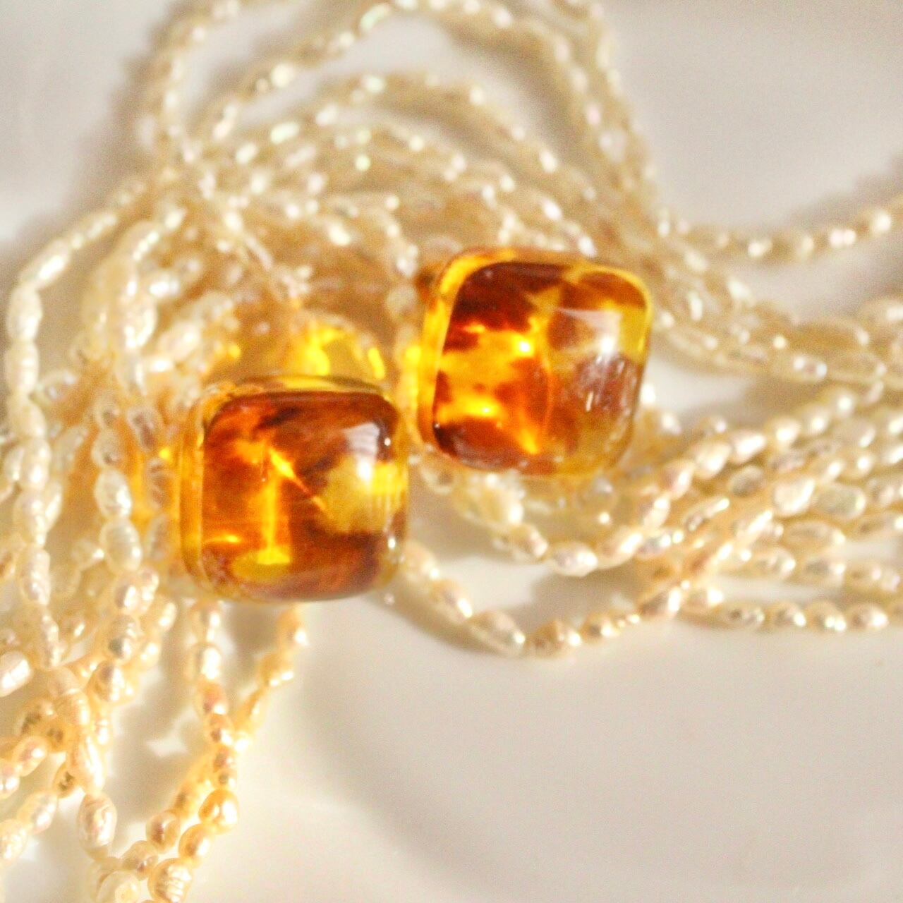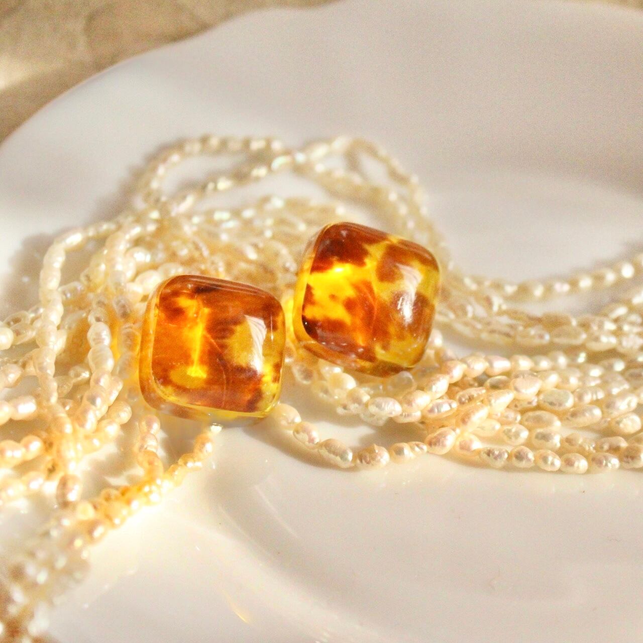琥珀色キューブイヤリング