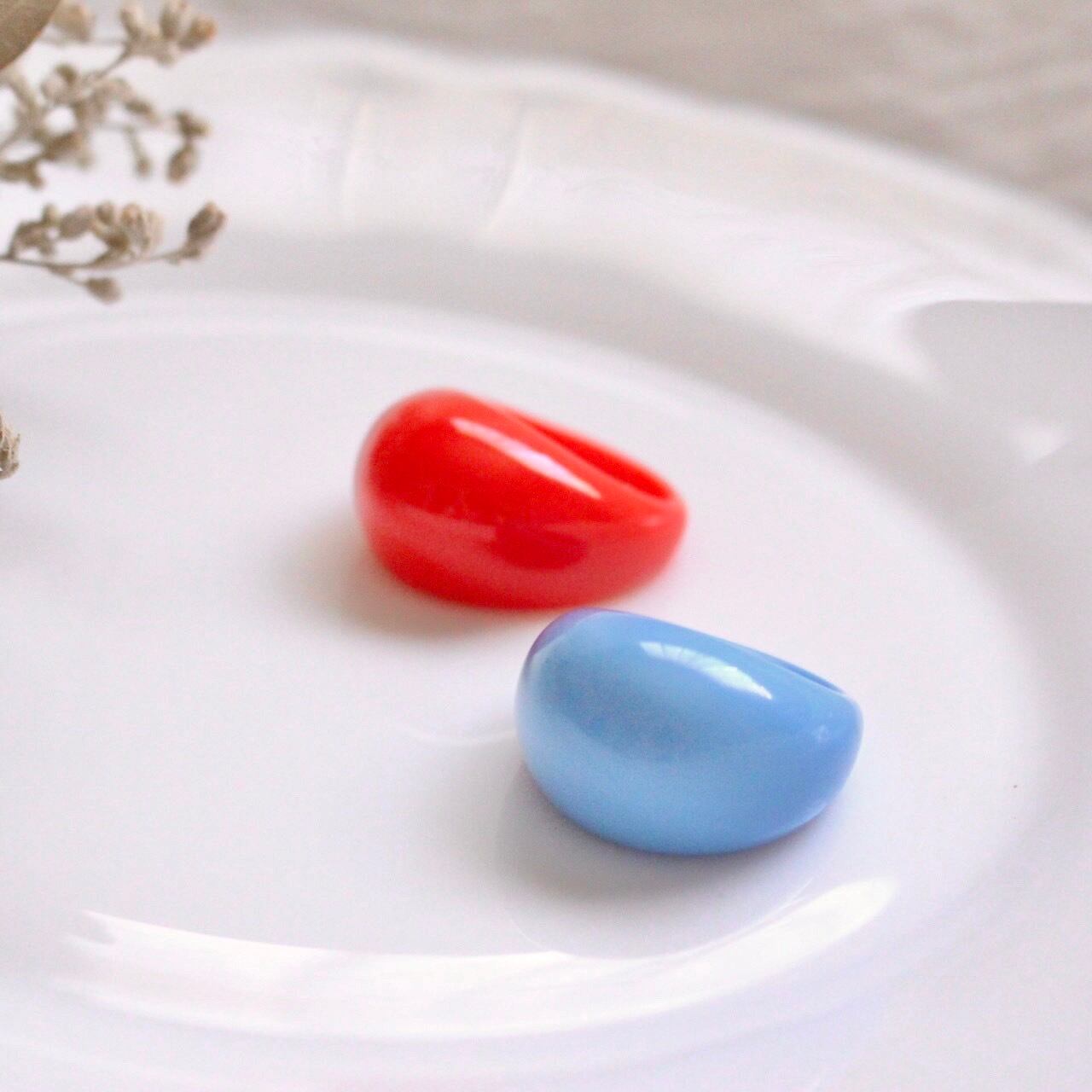 ぽてっとしたシルエットがなんとも愛らしいカラフルリング。