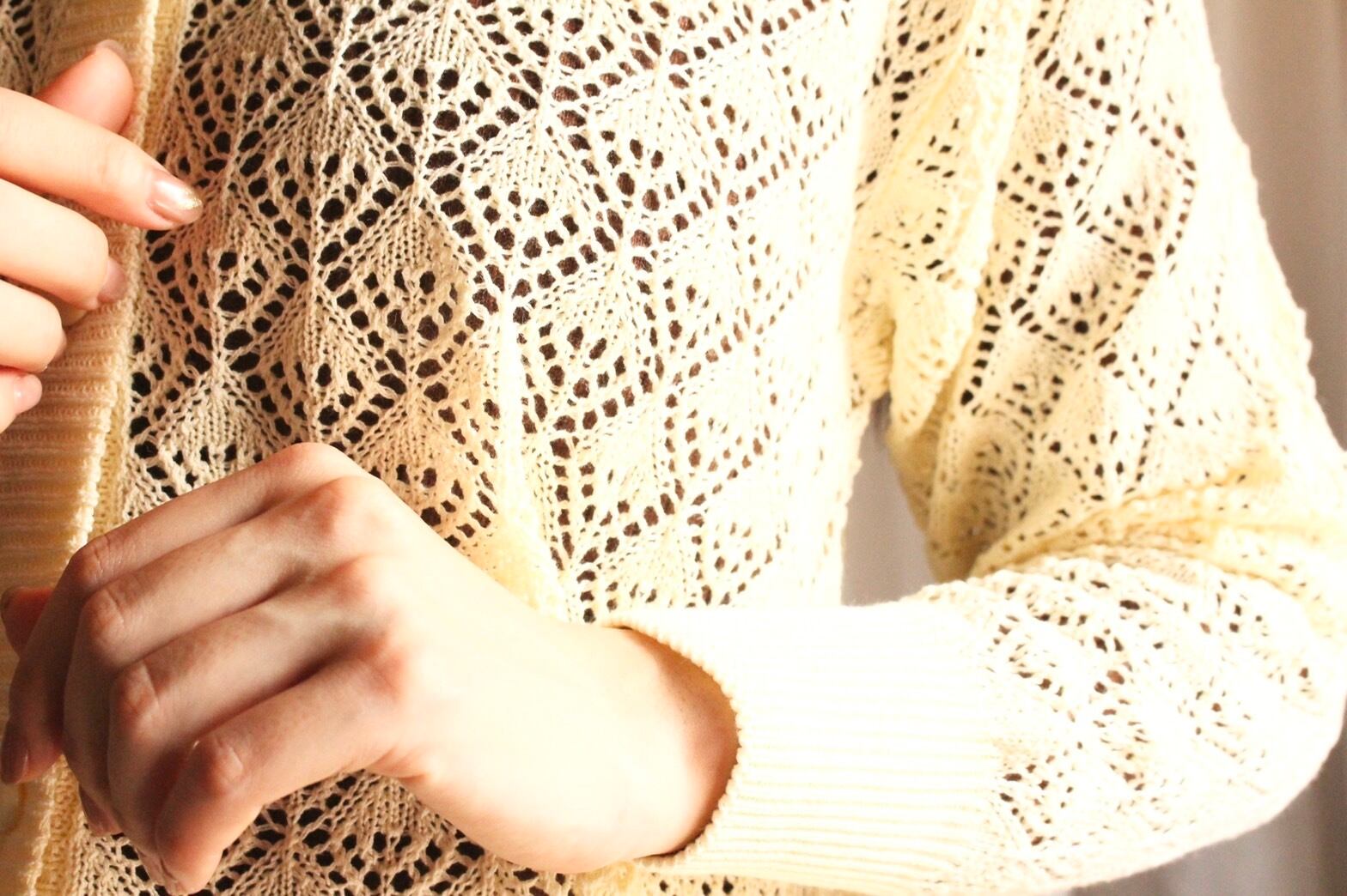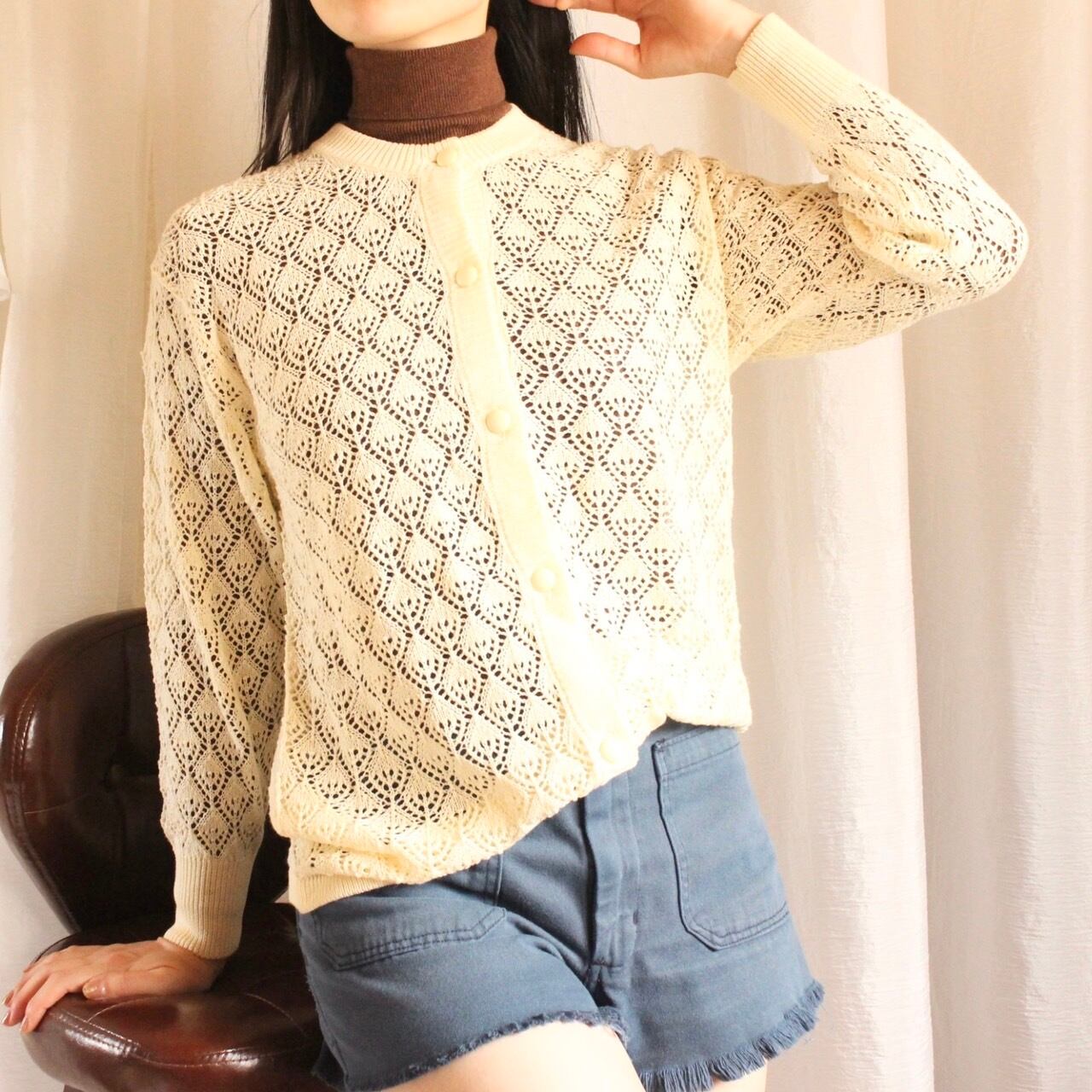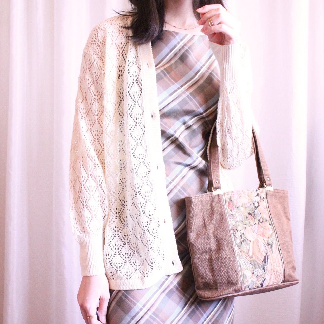 色は柔らかい印象のオフホワイトで、チェック柄や秋カラーに大変よく馴染む一点。