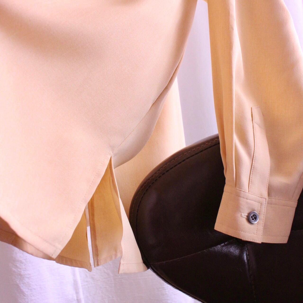 春色、パステルイエローのシャツ。