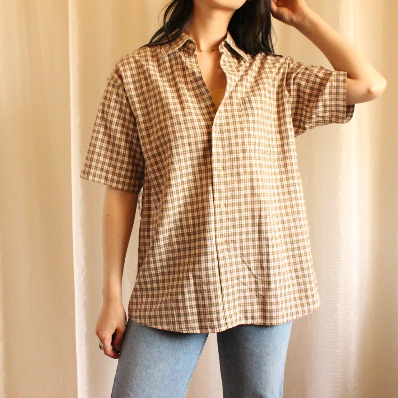 爽やかなグリーンのチェック柄のメンズシャツです。