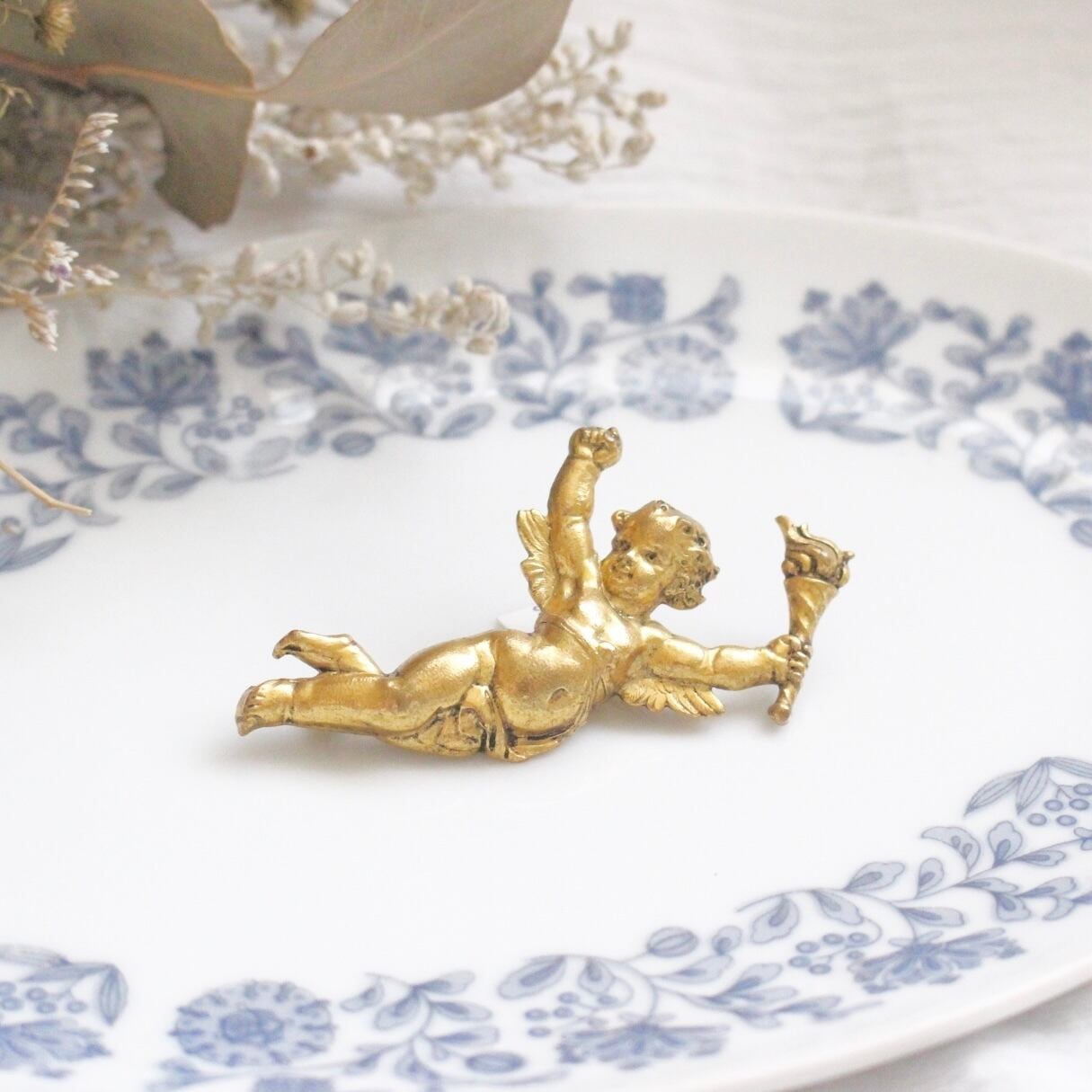 真鍮のエンジェルがエレガントでキュートなブローチ。