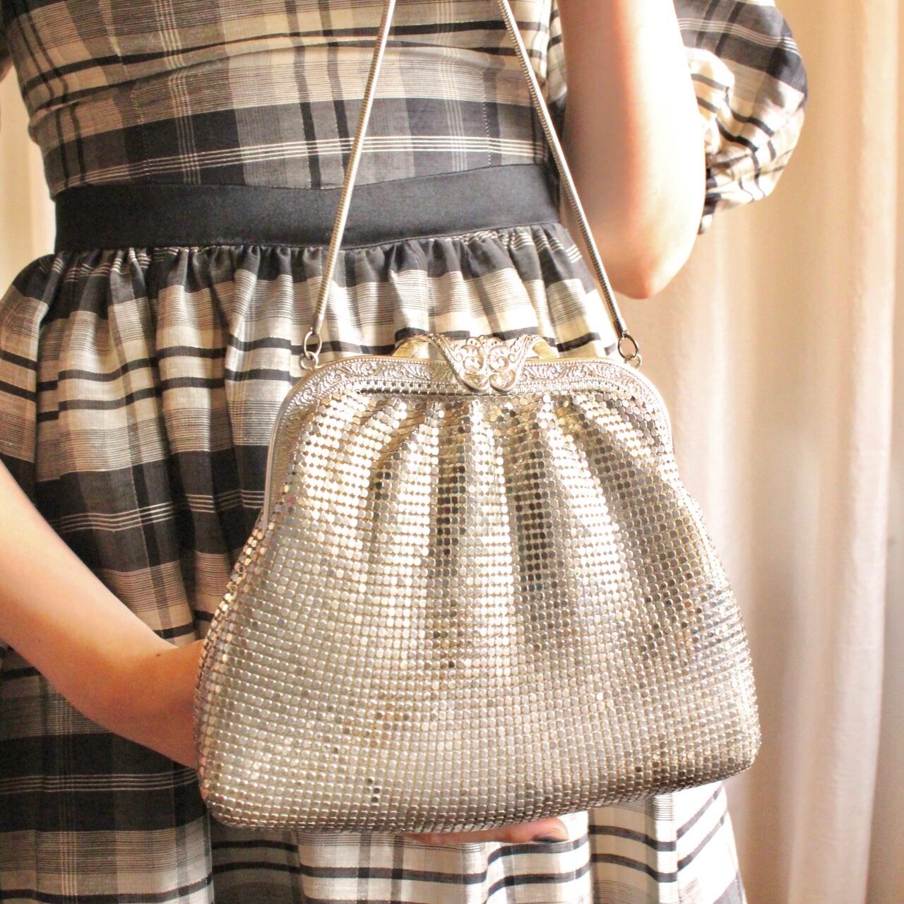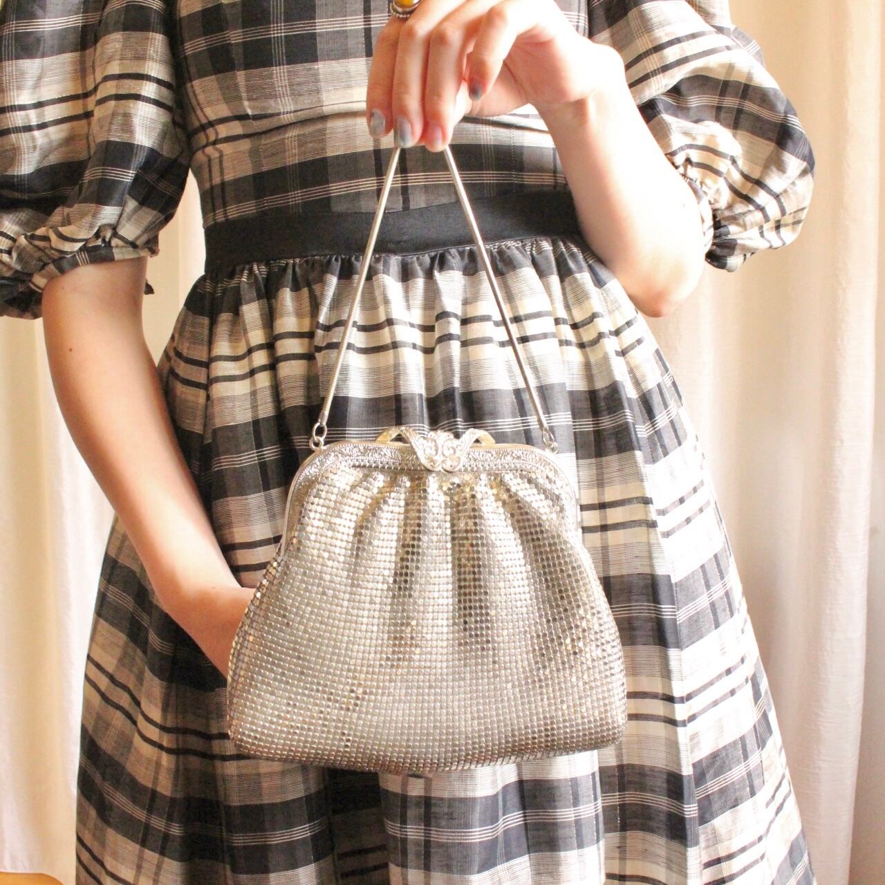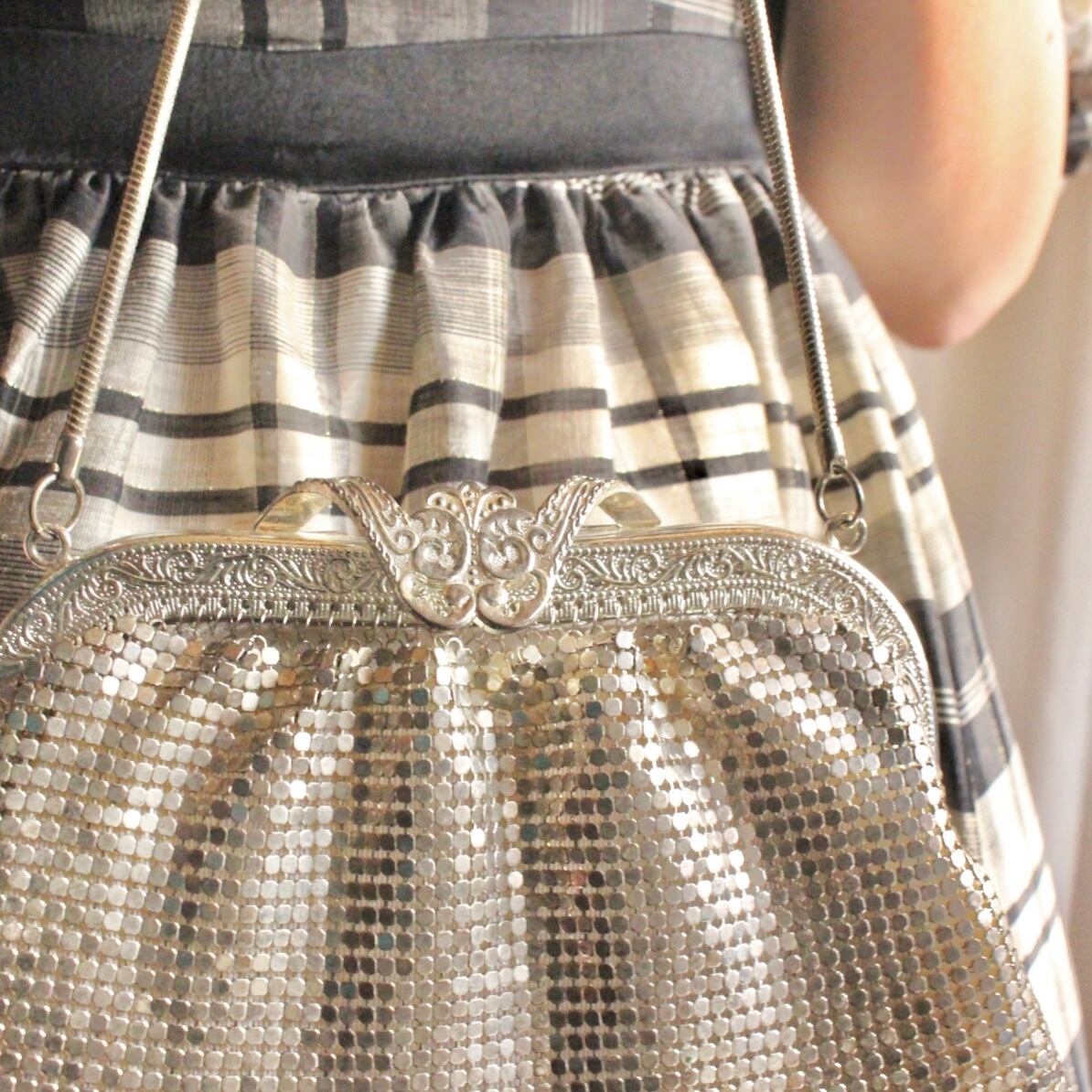 キラキラ、ミラーボールのように輝きのあるシルバーのビーズバッグ◎