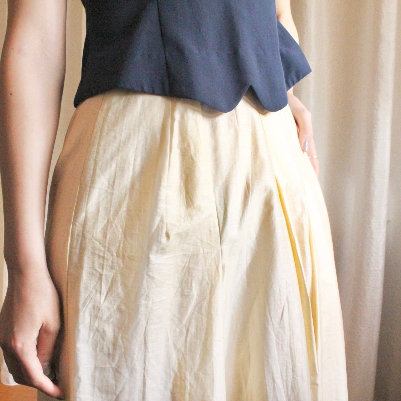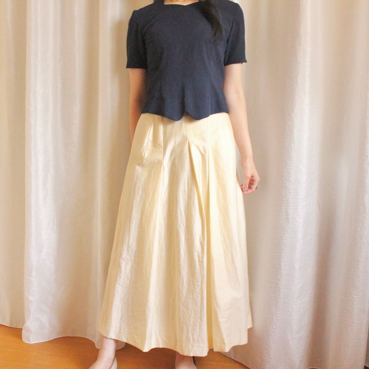 ハリと少しの光沢感がある生地がスタイリッシュかつキレイめなスカート。