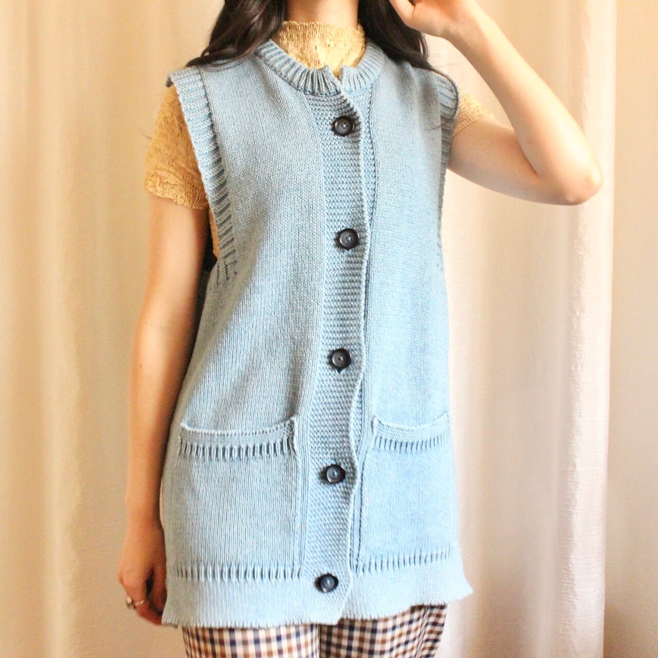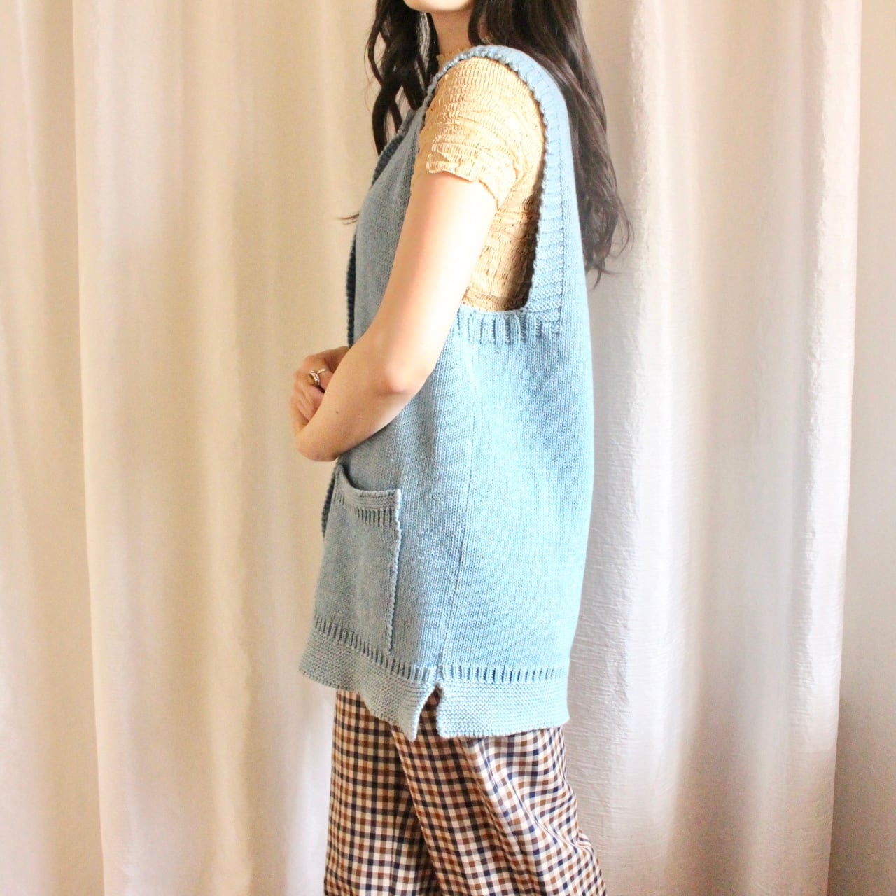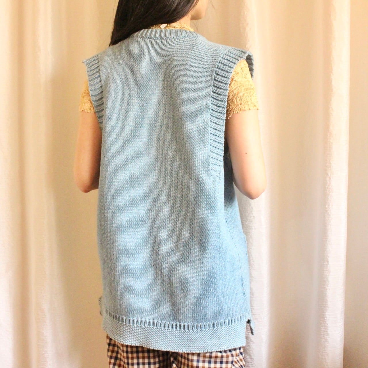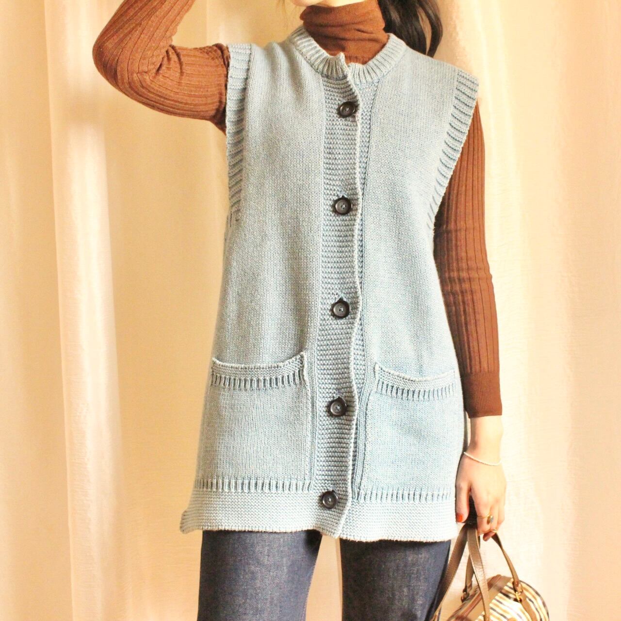 鮮やかなブルーとシンプルなデザインが使い勝手抜群なドイツ製のニットベスト。