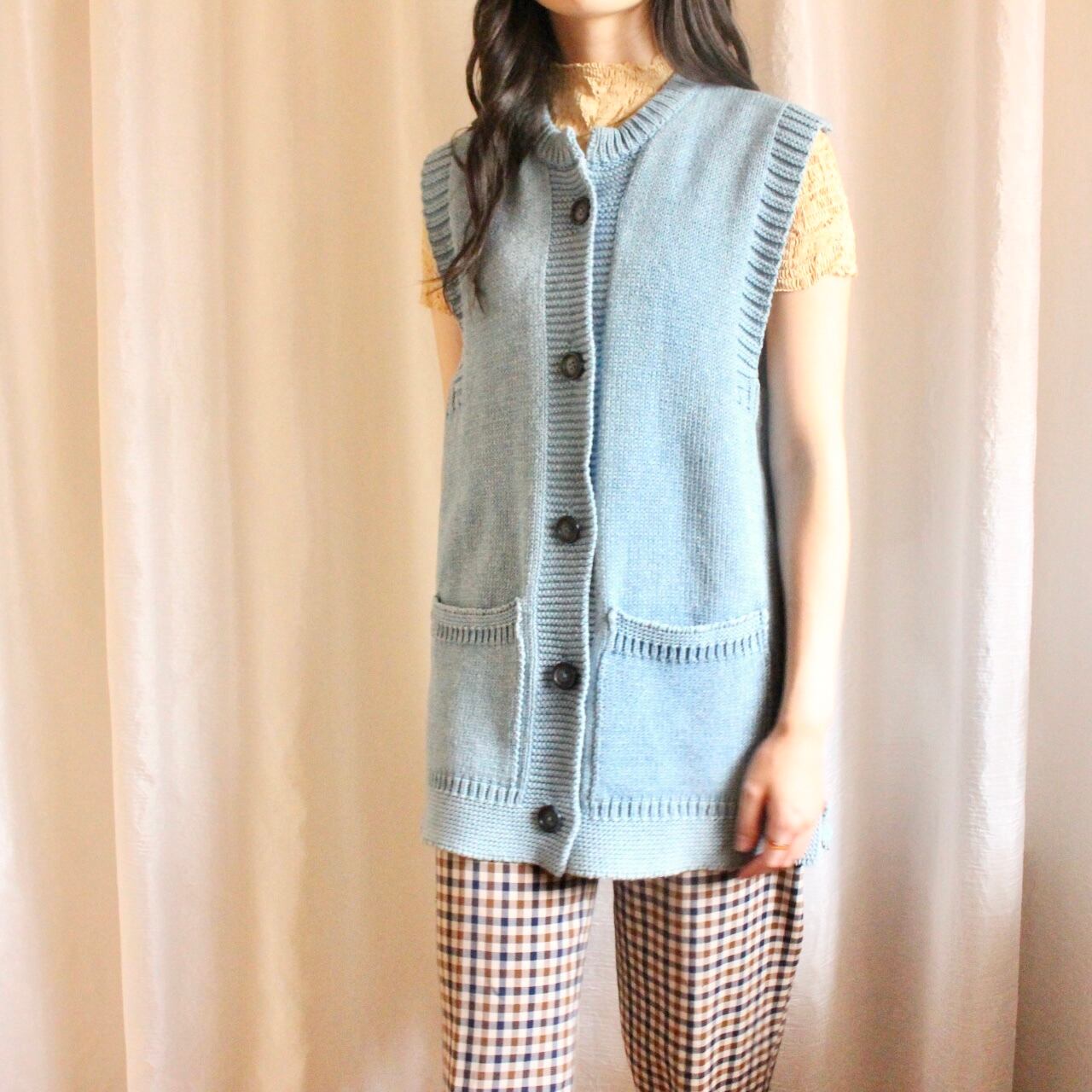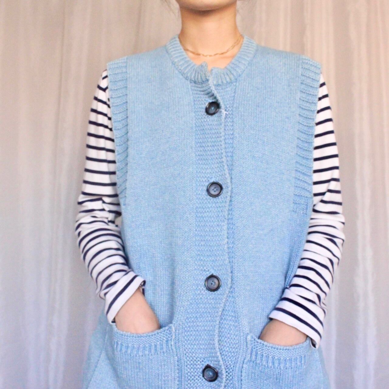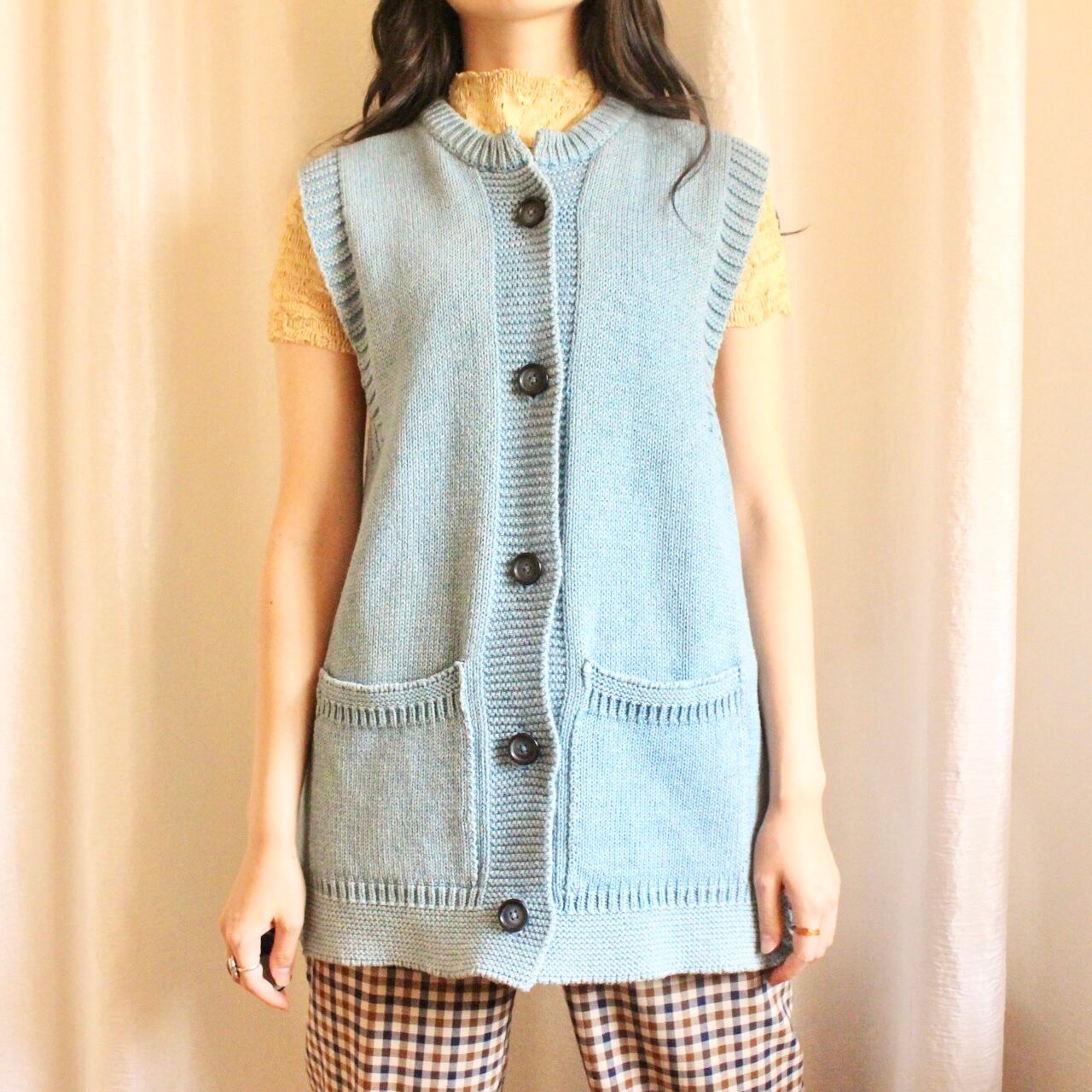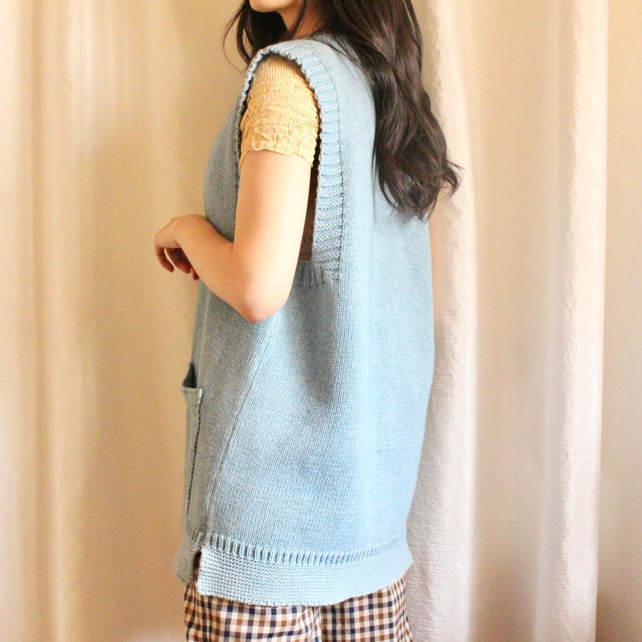 鮮やかなブルーとシンプルなデザインが使い勝手抜群なドイツ製のニットベスト。