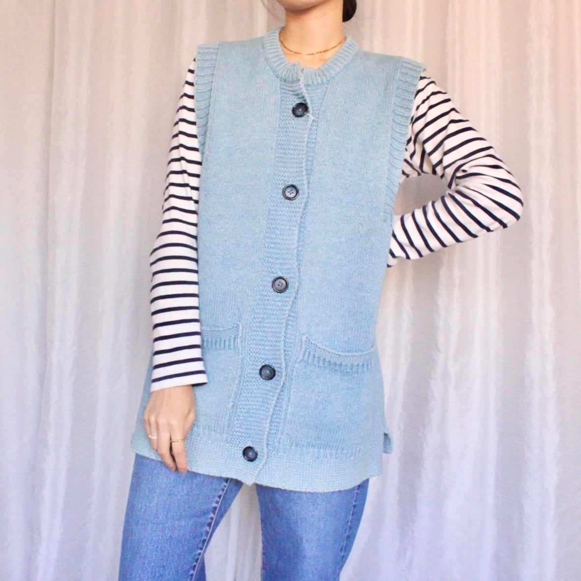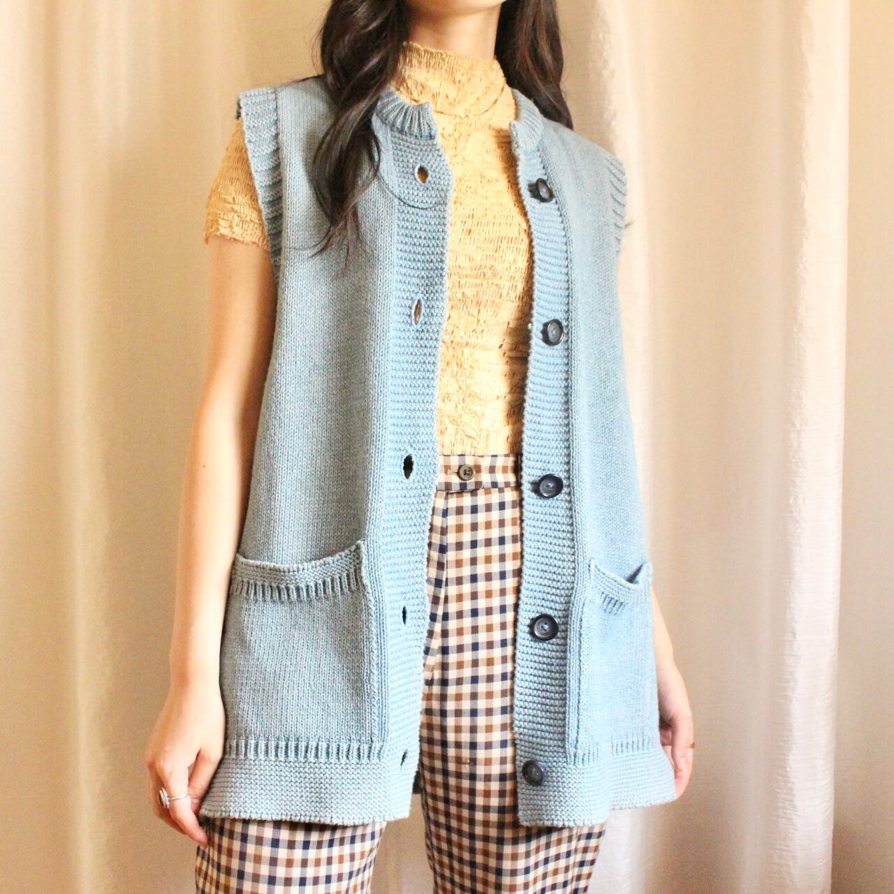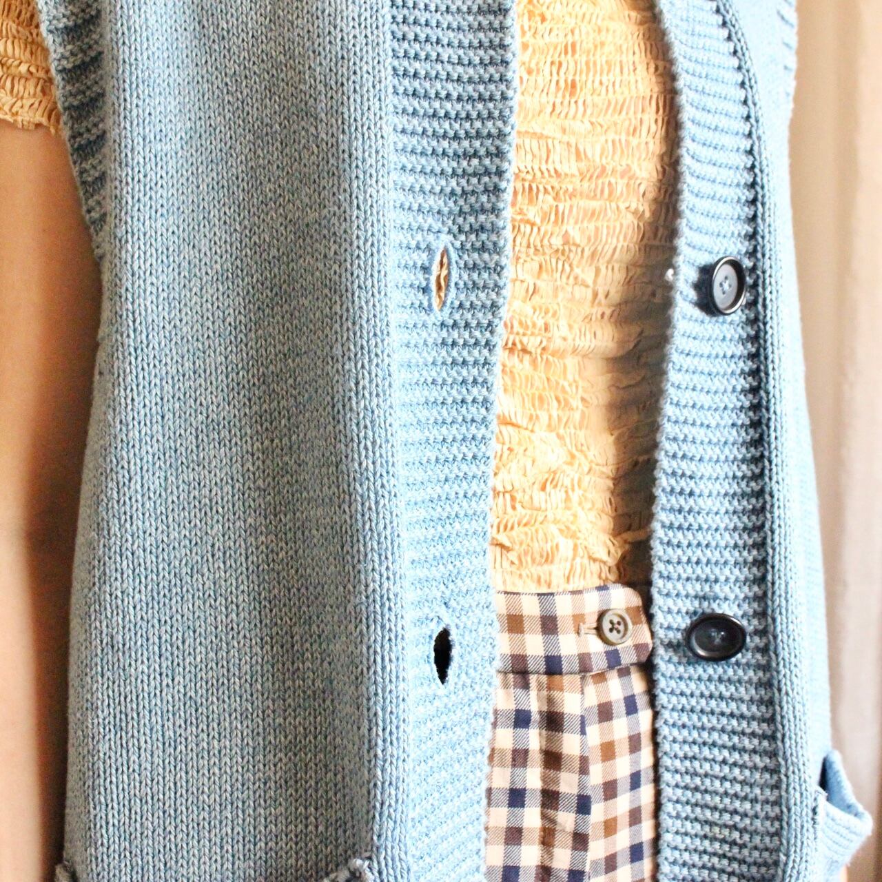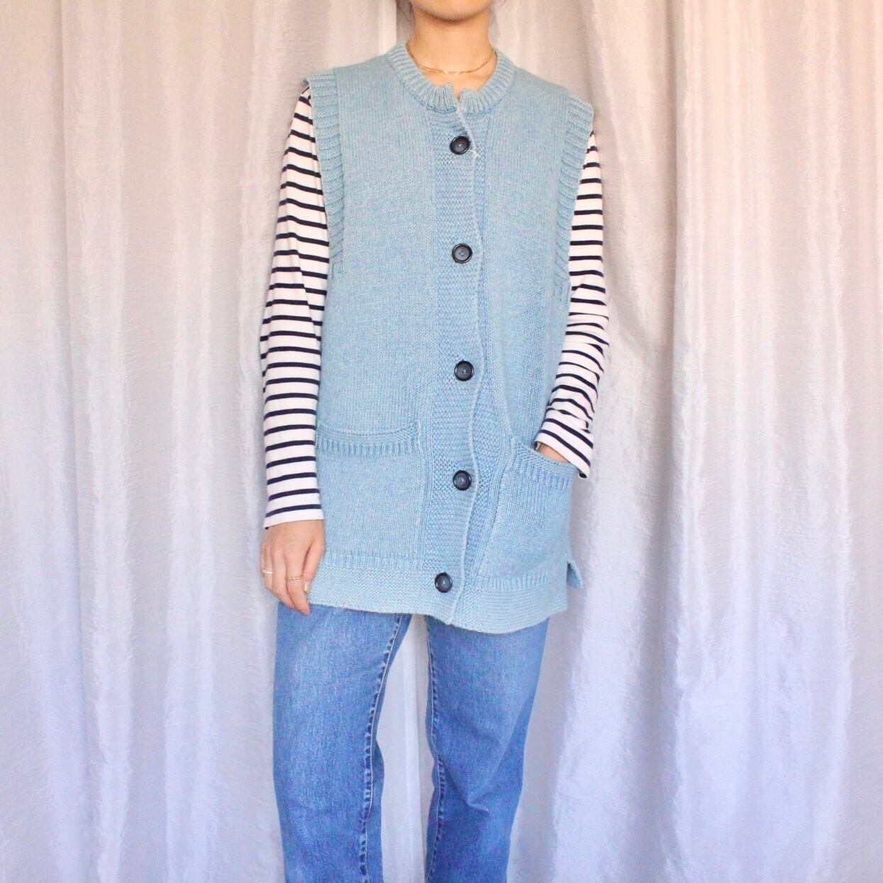 鮮やかなブルーとシンプルなデザインが使い勝手抜群なドイツ製のニットベスト。