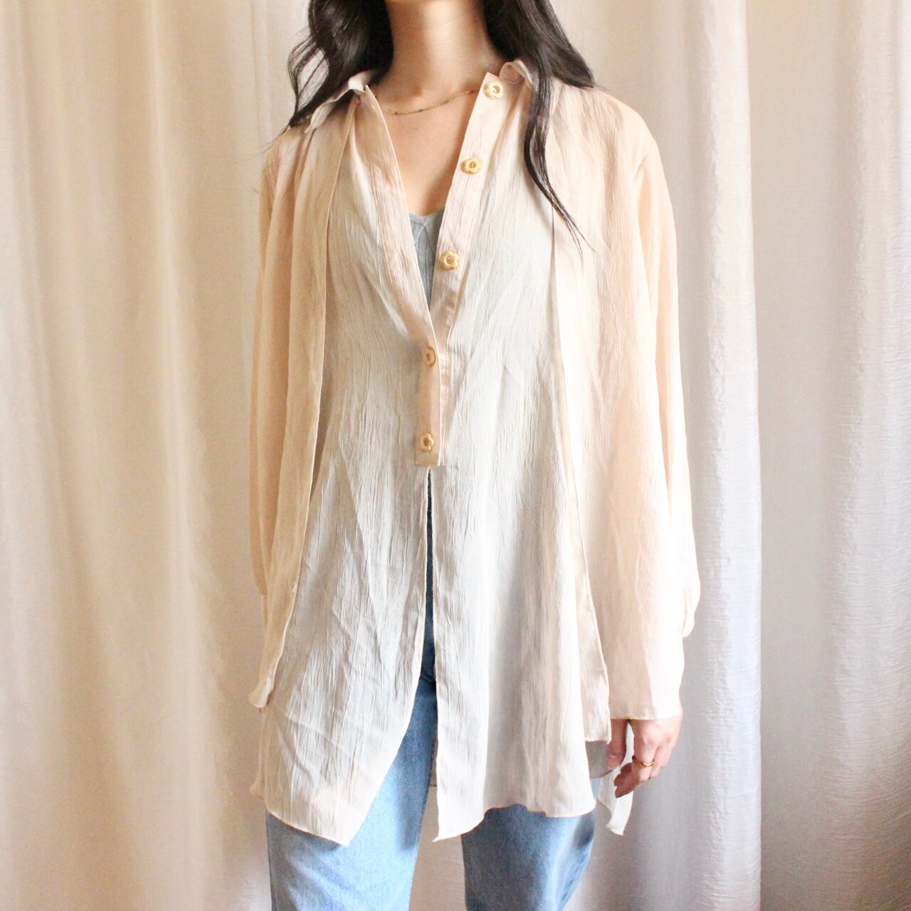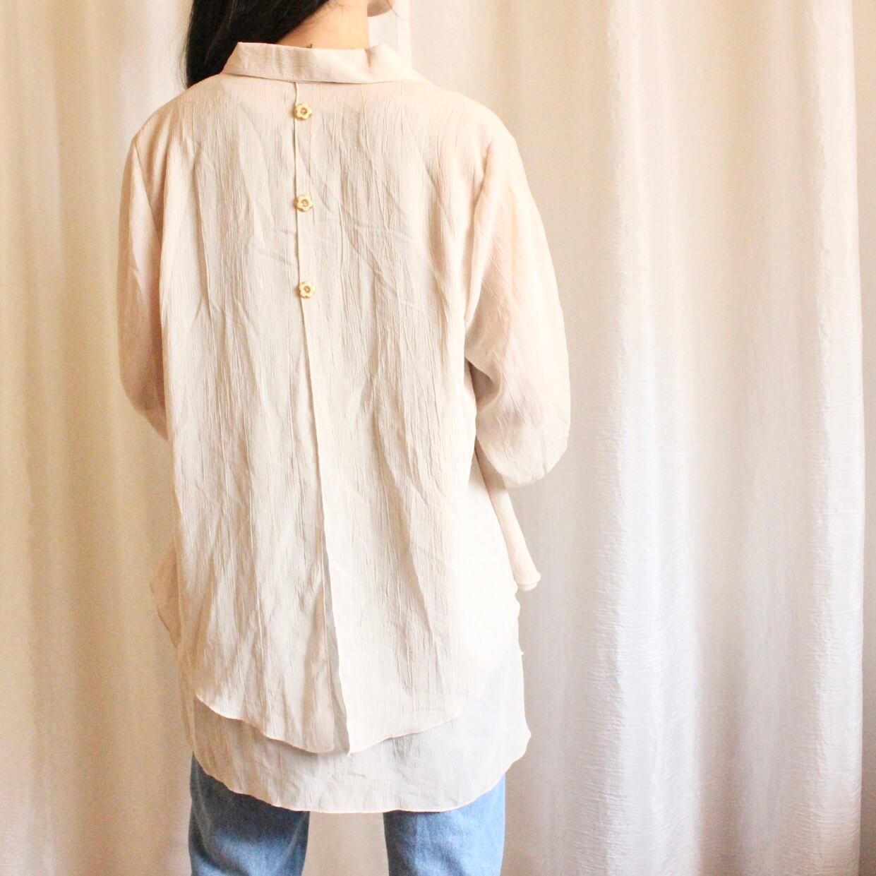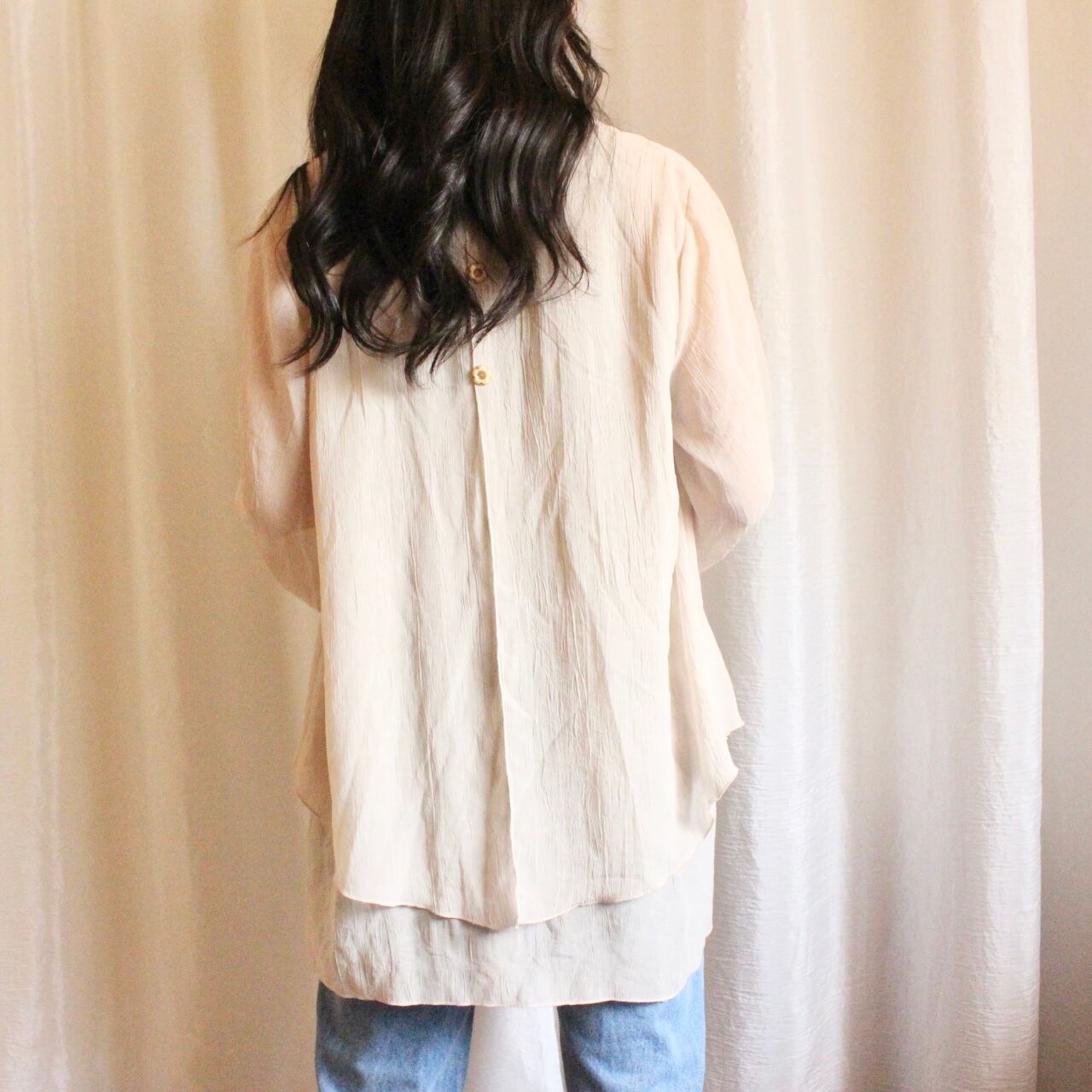 軽やかなシアーな生地が重なって奥行きのある個性的なデザインのシャツです。