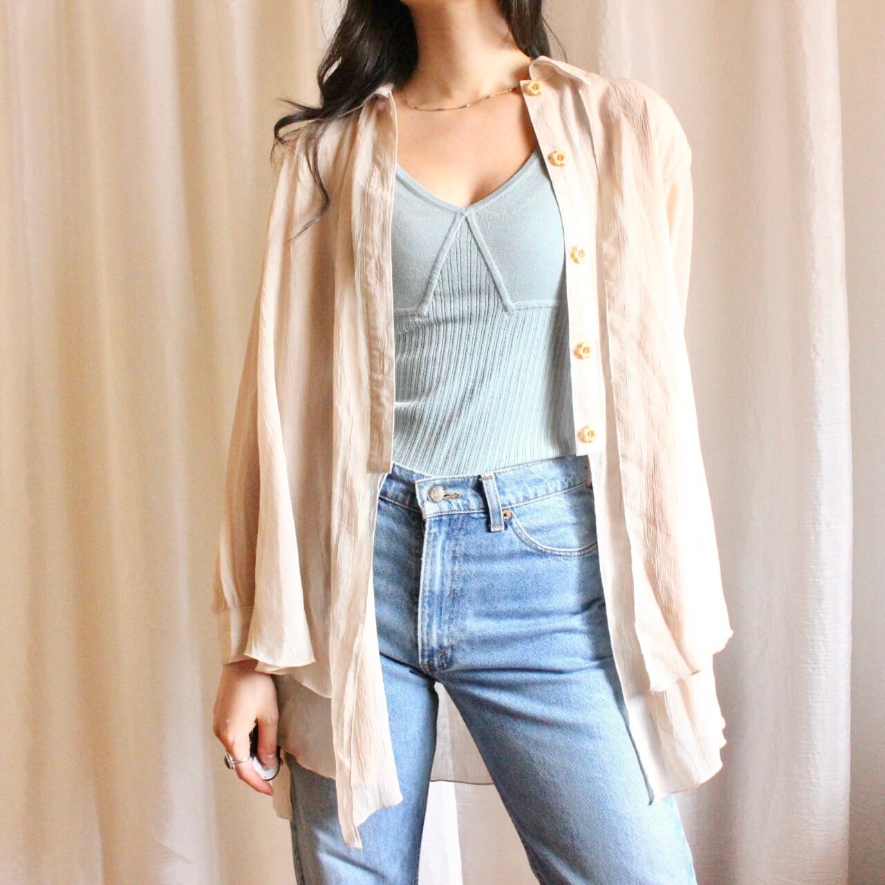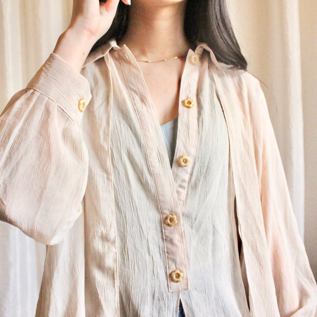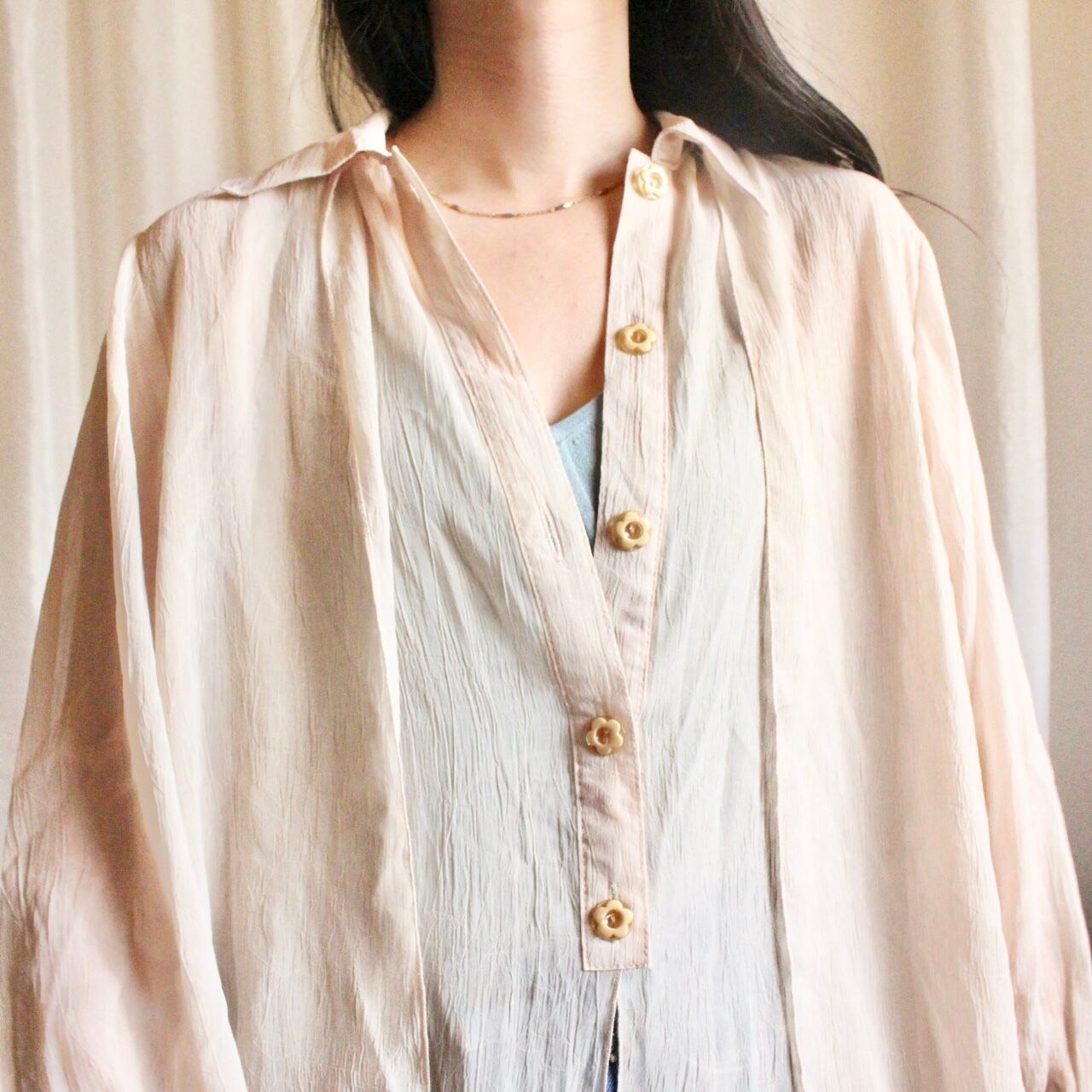 軽やかなシアーな生地が重なって奥行きのある個性的なデザインのシャツです。