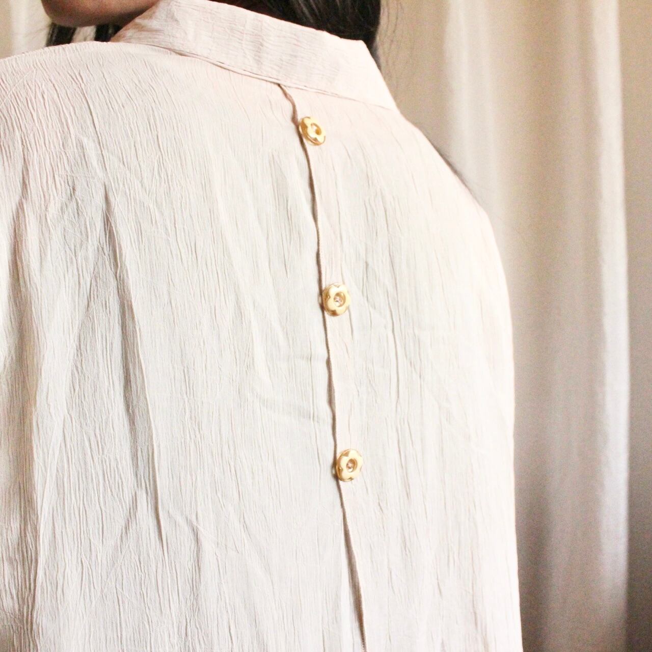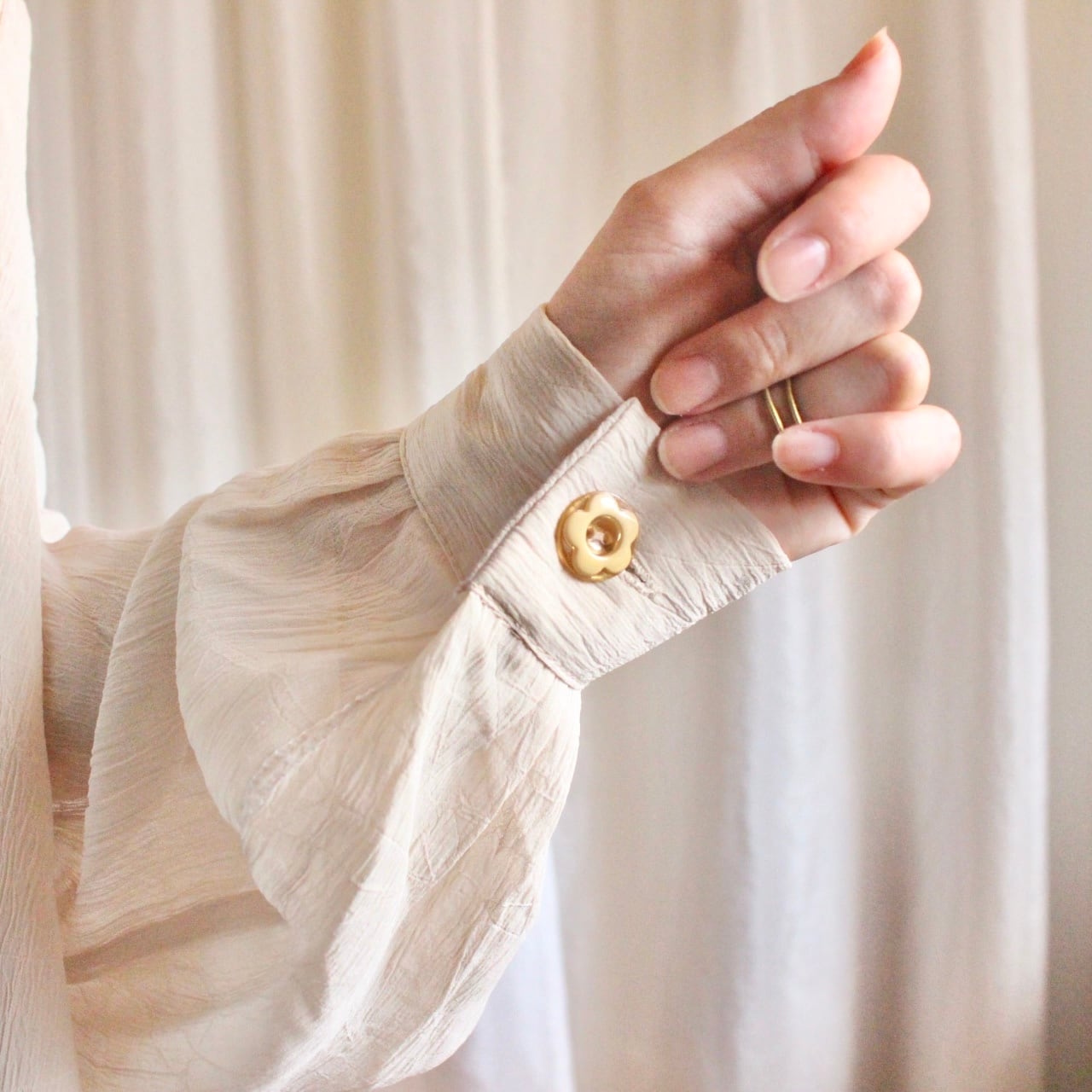 フロント、袖口、バックにもお花ボタンがついていて、大人っぽくも可愛さもある一点です。