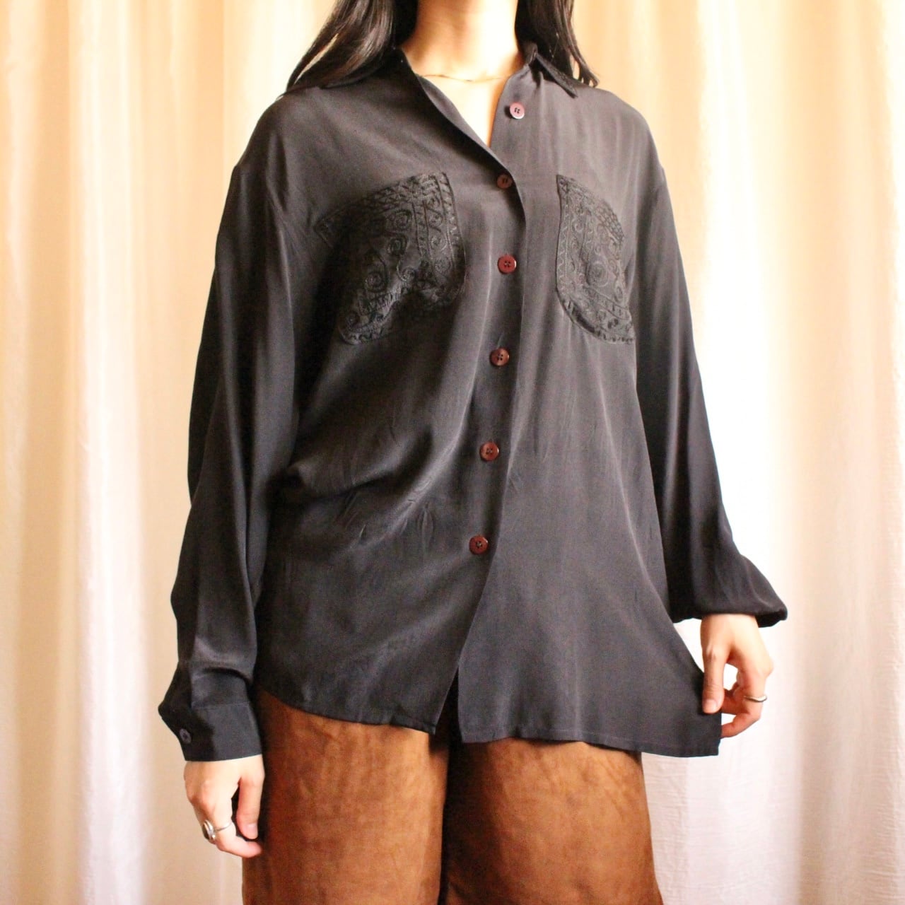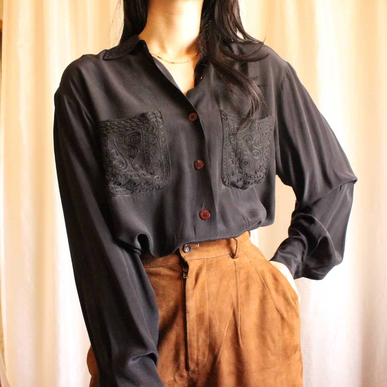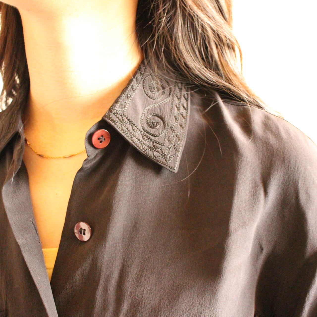 silk100%のとろみのある上質な手触りがとても気持ちの良い一点。