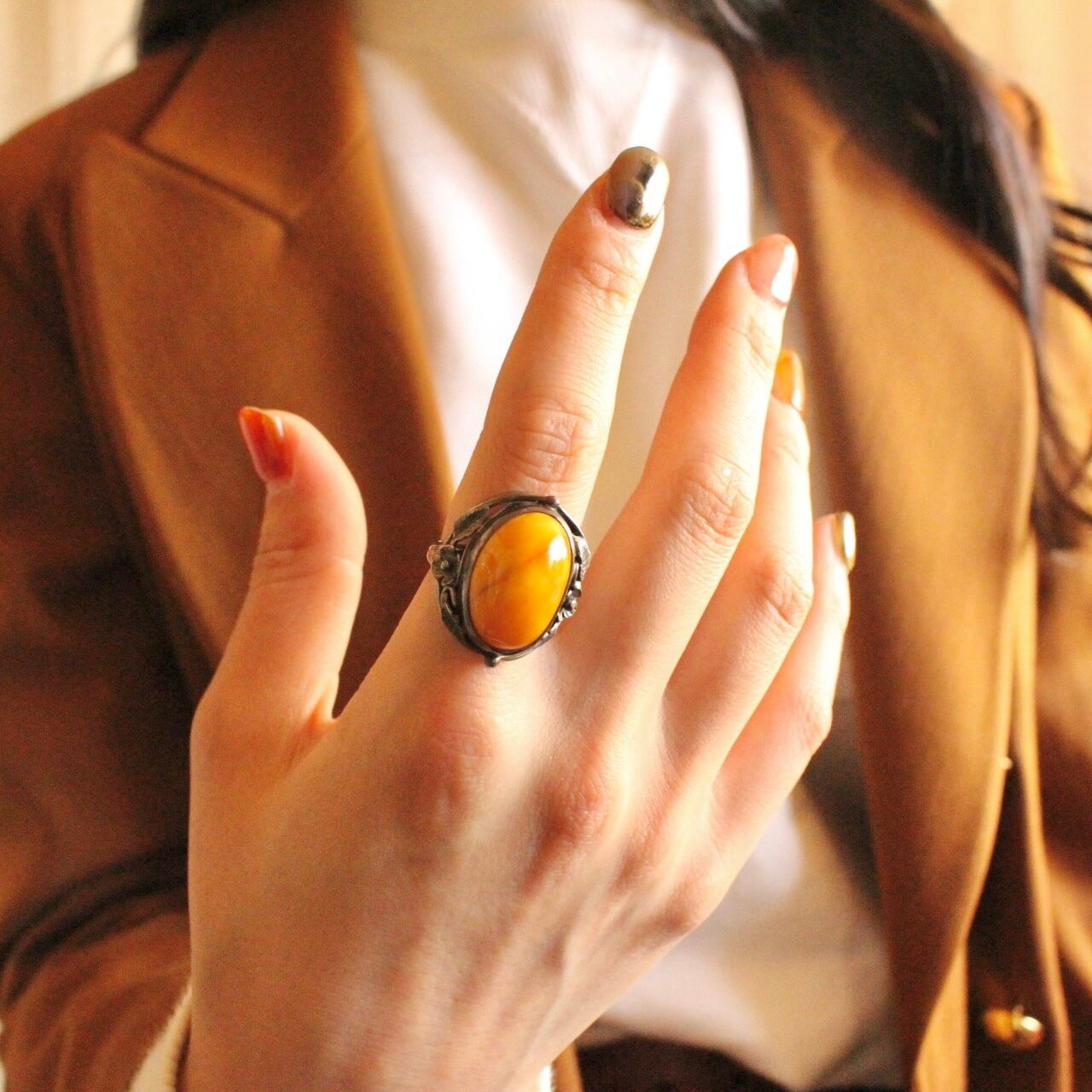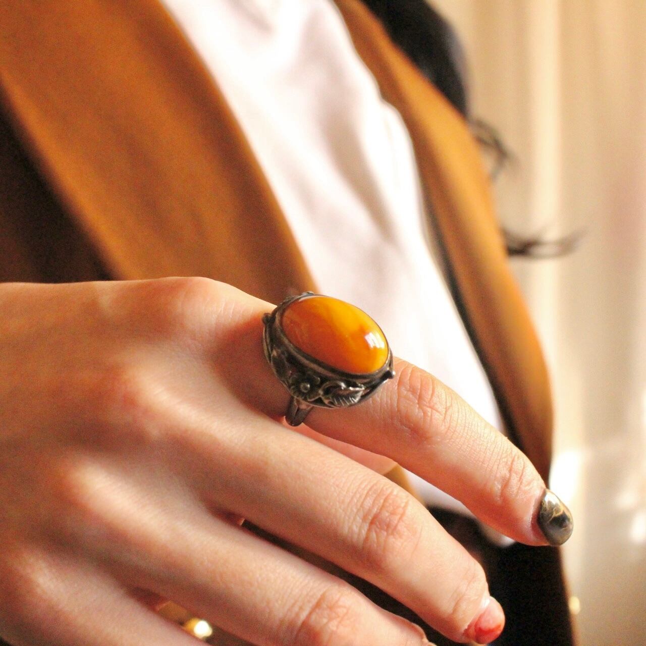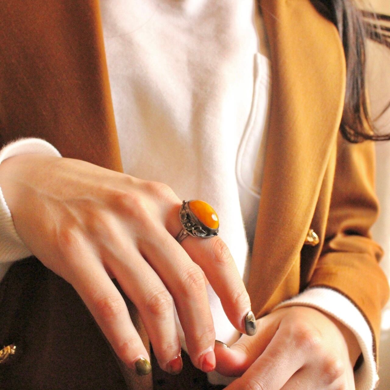 コーデの主役になれるほど存在感のあるリングは、ワントーンのシンプルなコーデに合わせてみてください◎