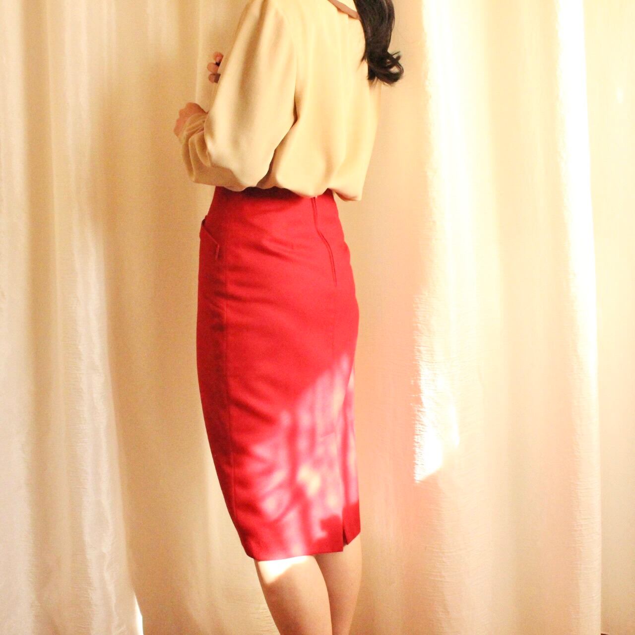 フェイクポケットの角度や、生地の切り替えなど、ウエスト周りがとても綺麗に見えるデザインになっています。