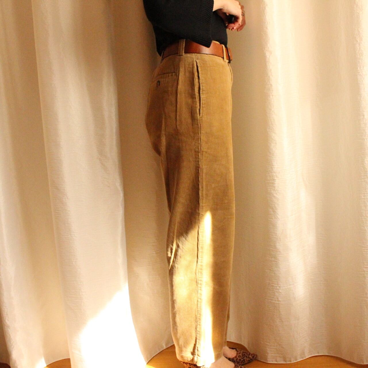・お尻や太もも周りが大きすぎず、もたつかないのでコーデュロイなのに大人っぽくキレイめな印象