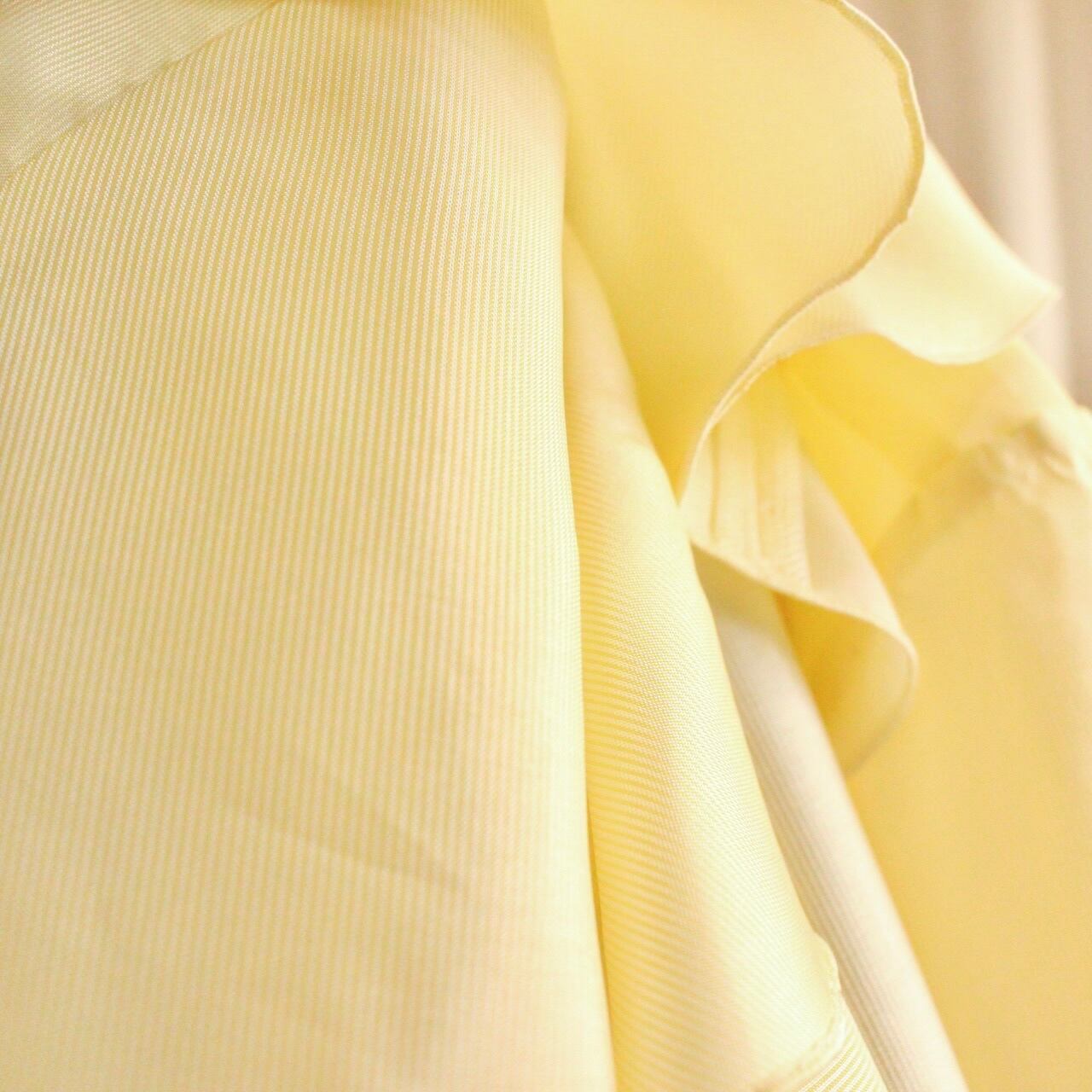 ・ワイドなフリルカラーでデコルテを華奢でエレガントな印象に