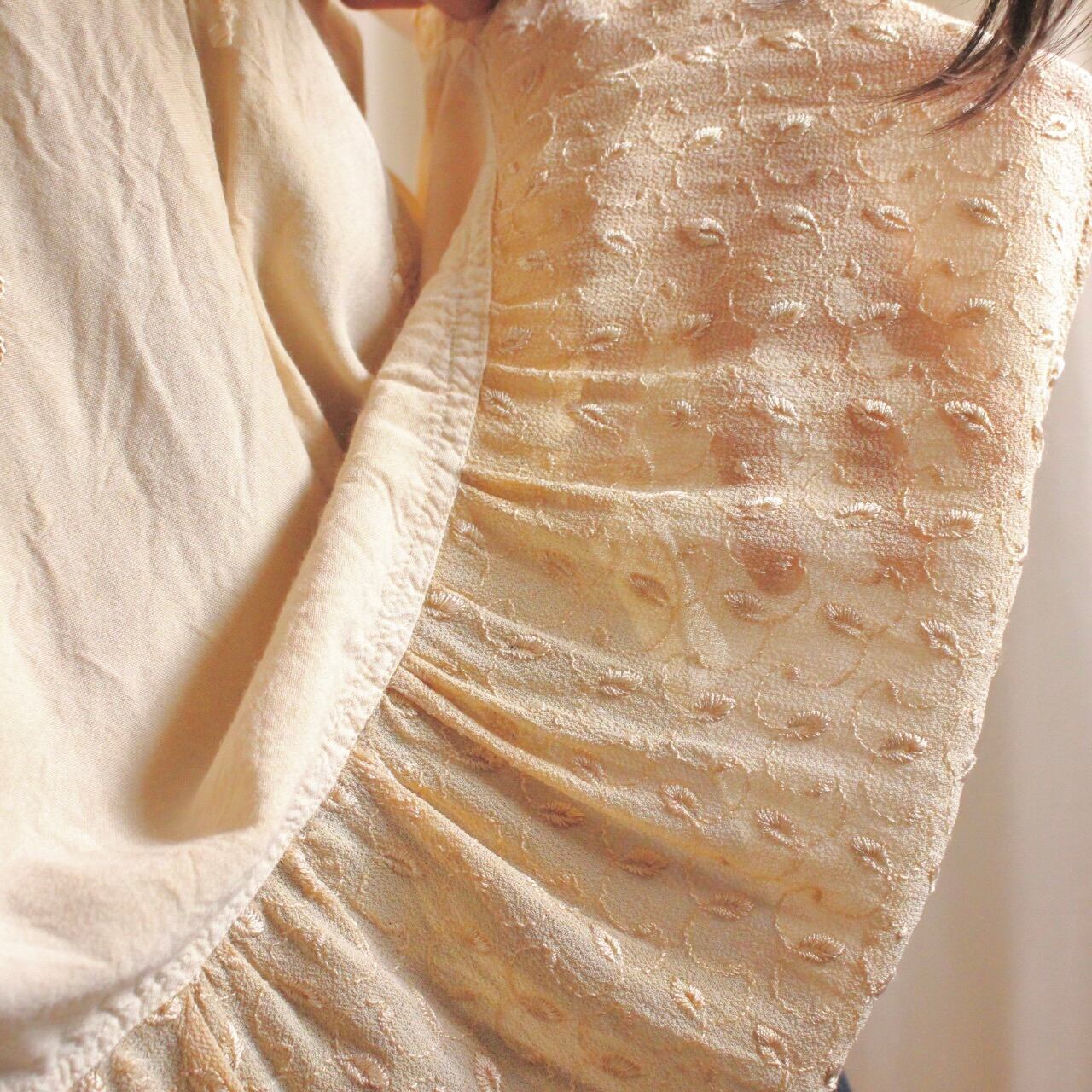 ・シンプルな中にも刺繍や、襟ぐりの袖口の細かい飾りなど、繊細なデザインが際立ちます