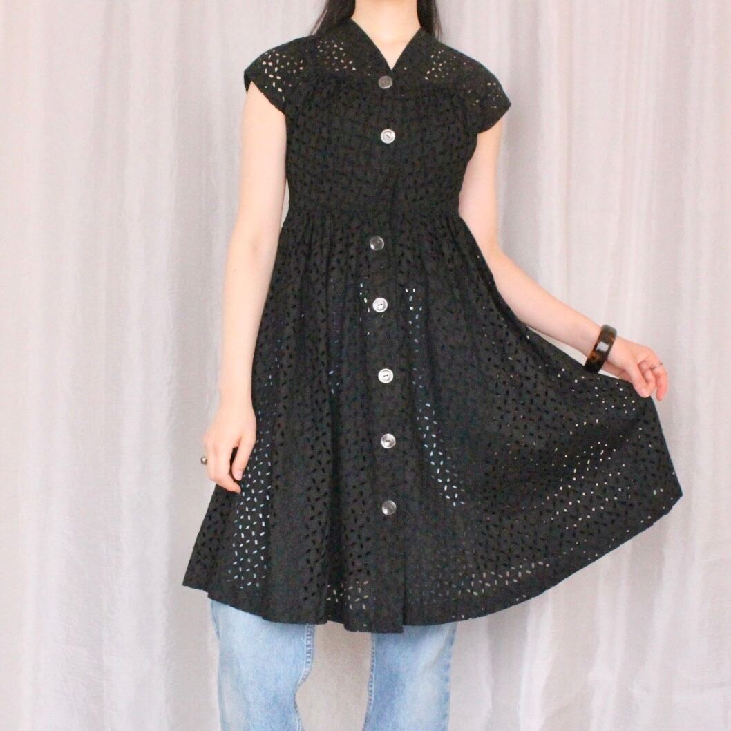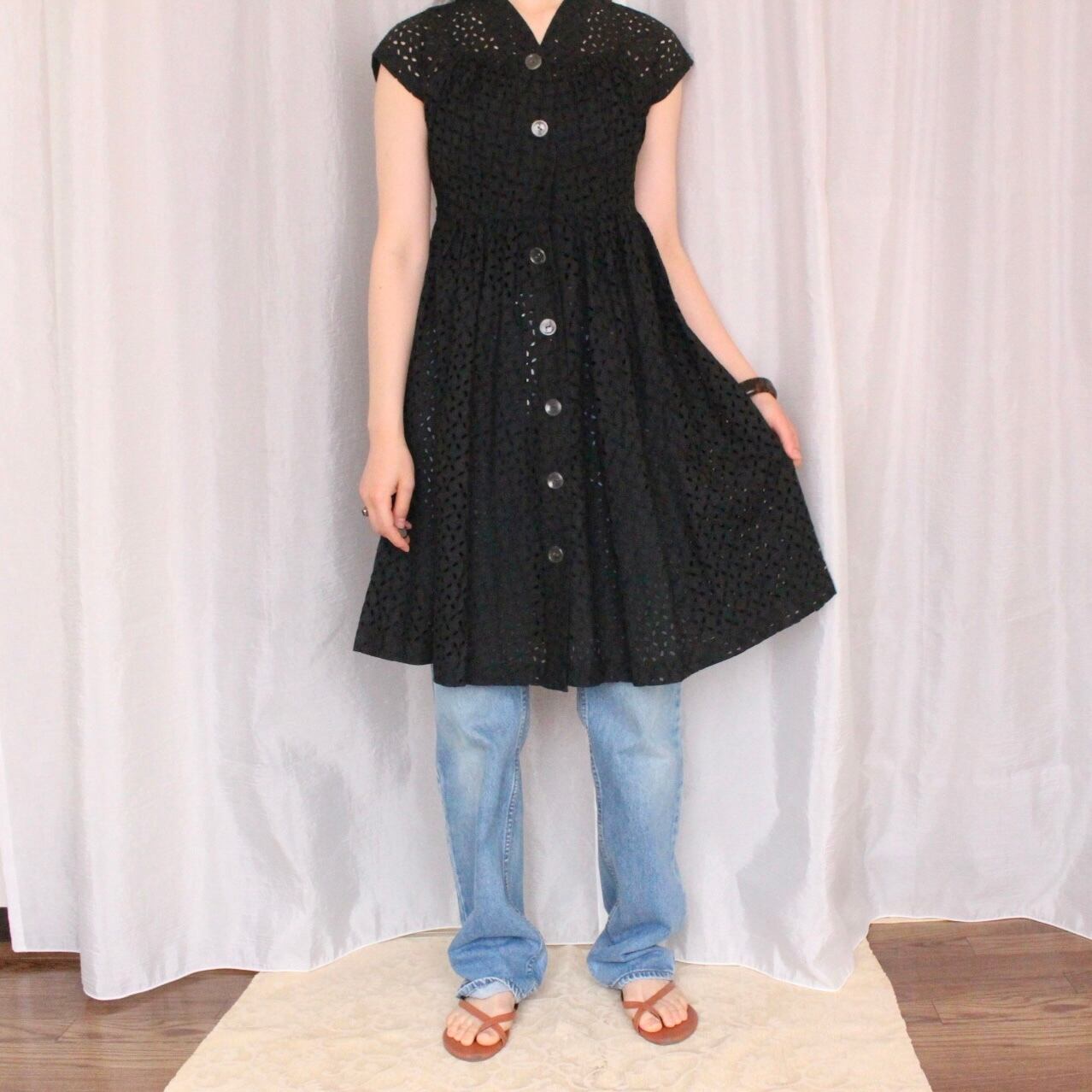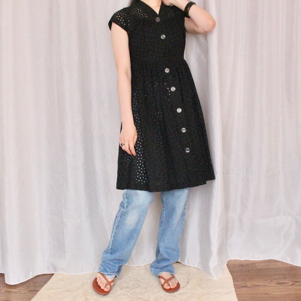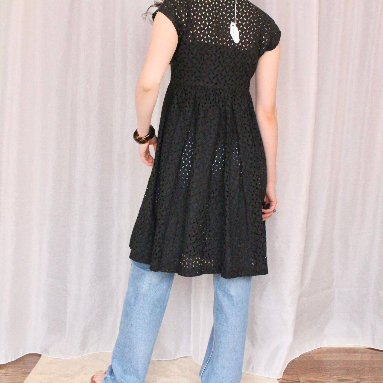 コットンレースワンピース ブラック【873】