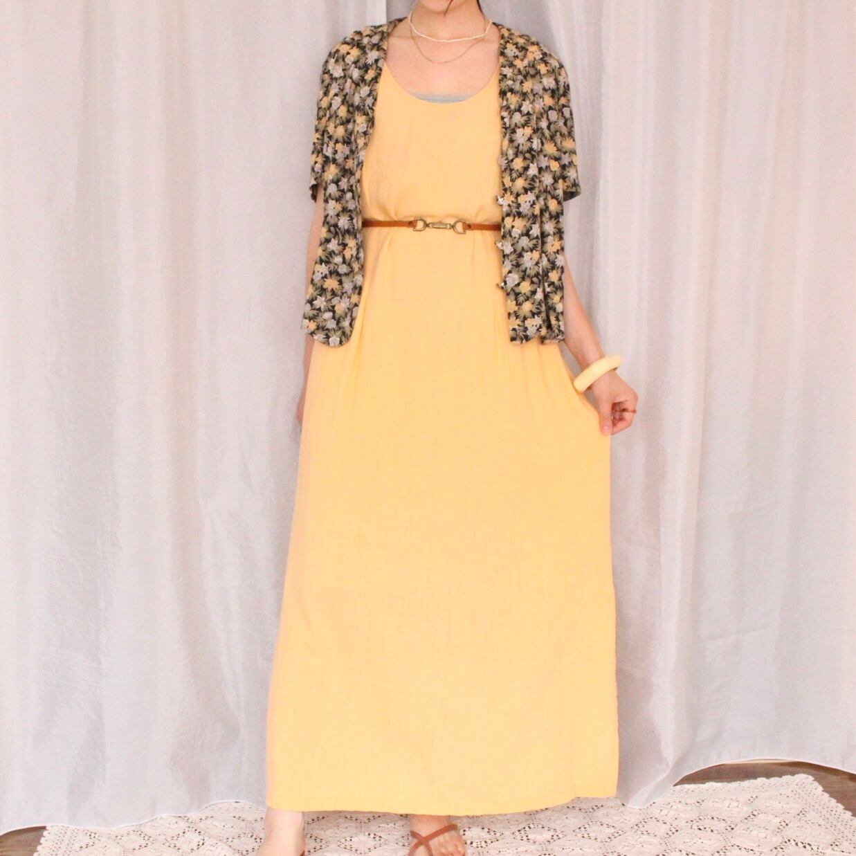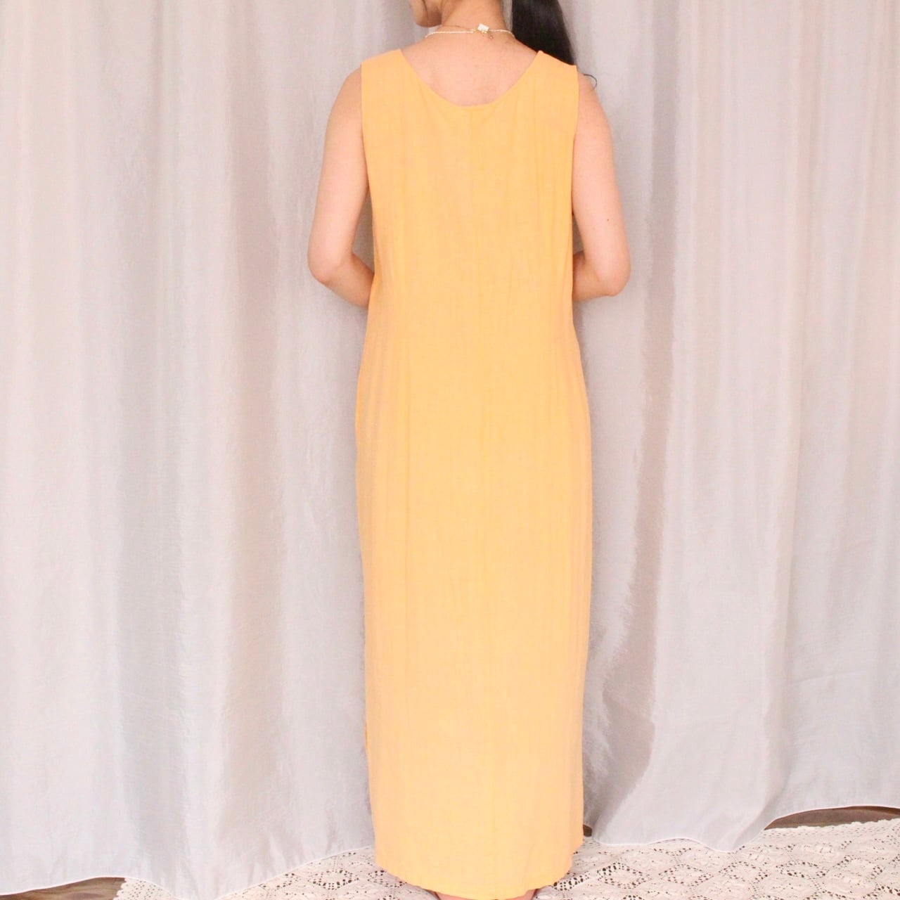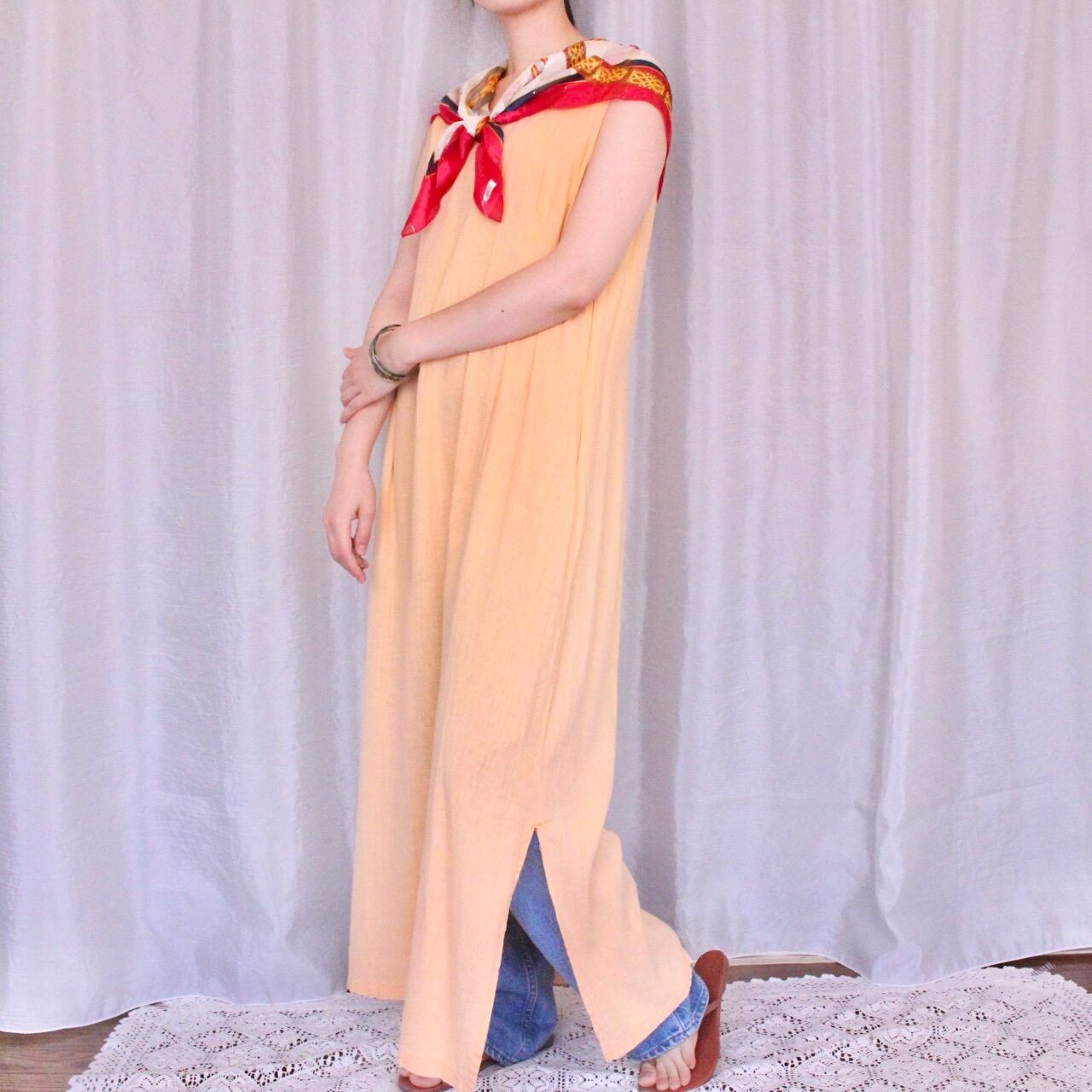 青空や緑の中に合いそうな優しい淡いオレンジカラーのワンピース◎