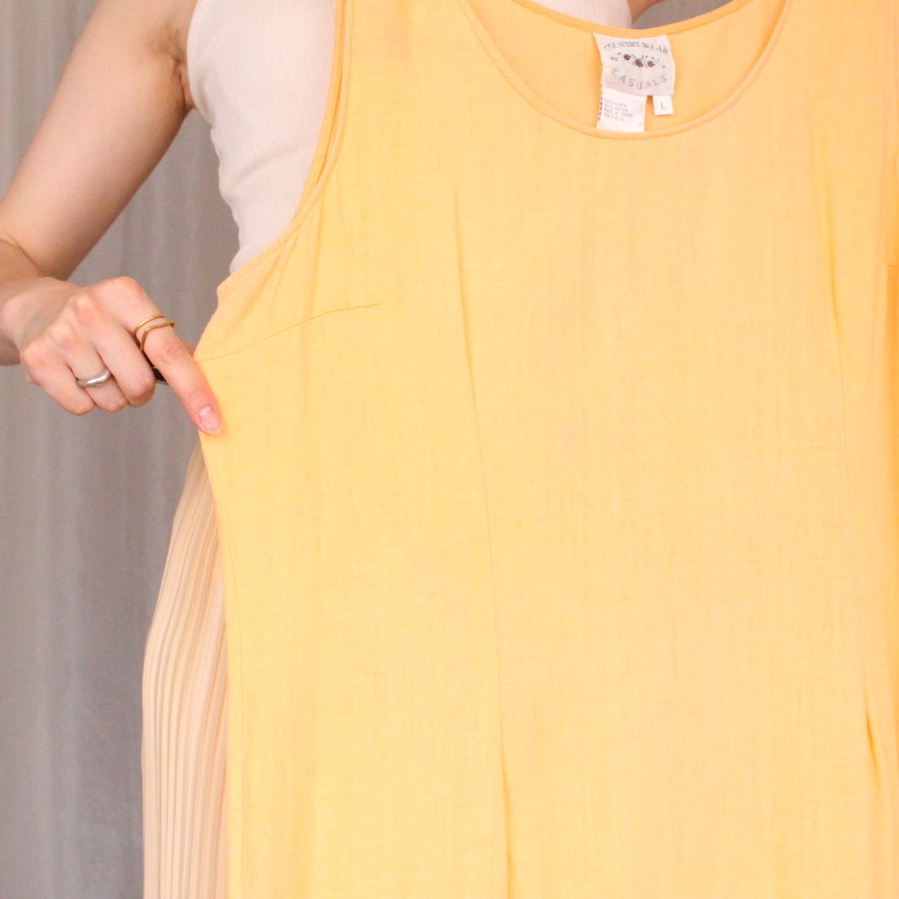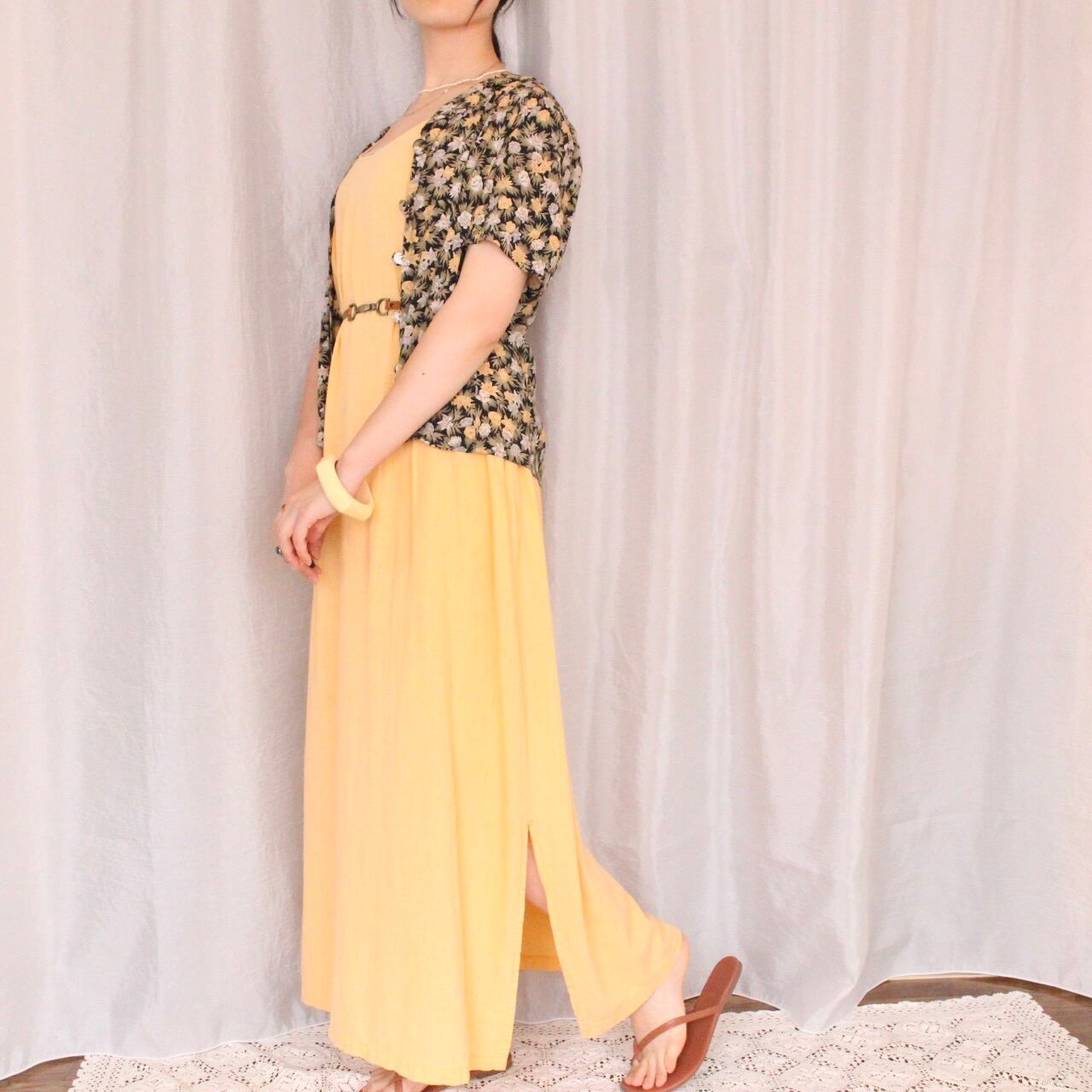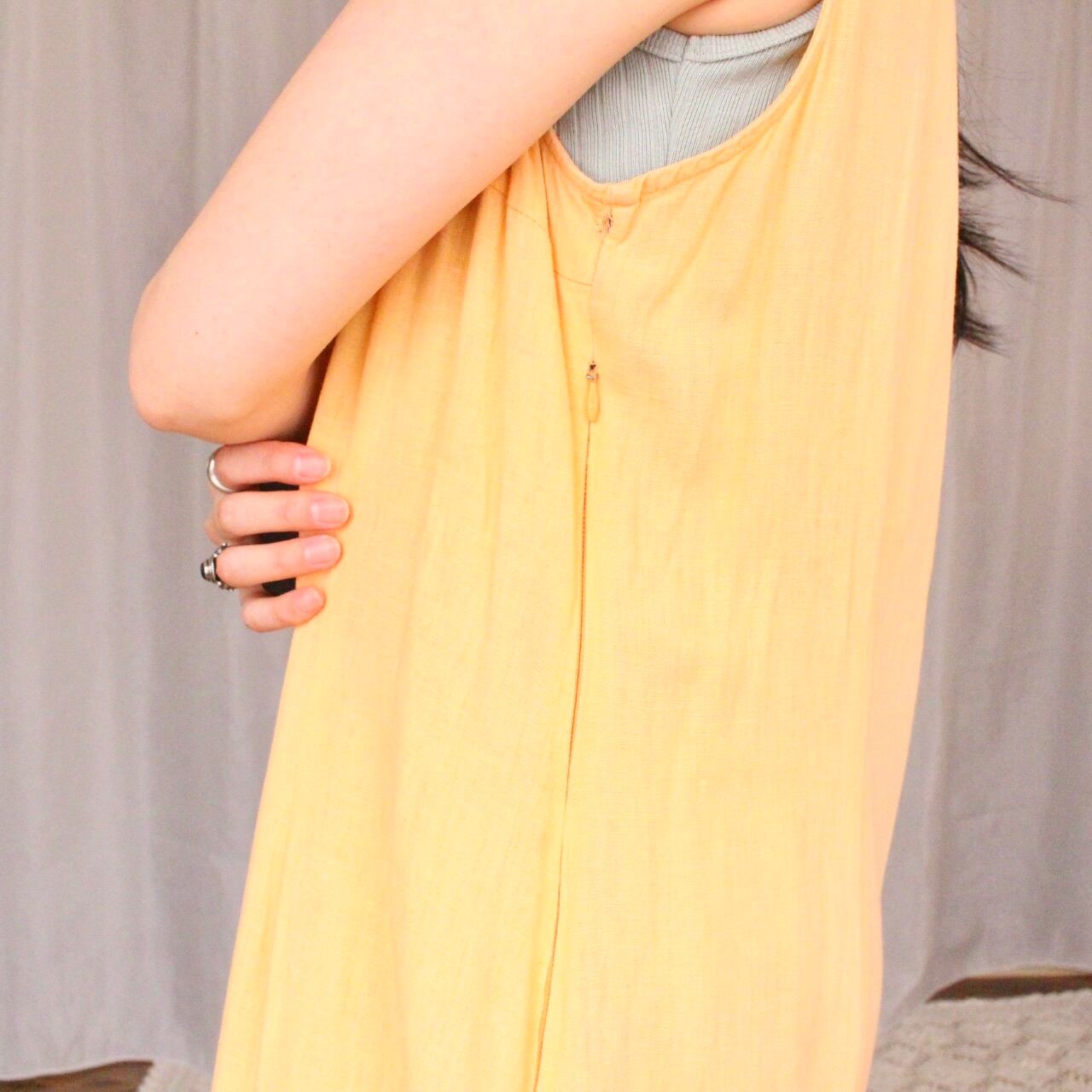 青空や緑の中に合いそうな優しい淡いオレンジカラーのワンピース◎