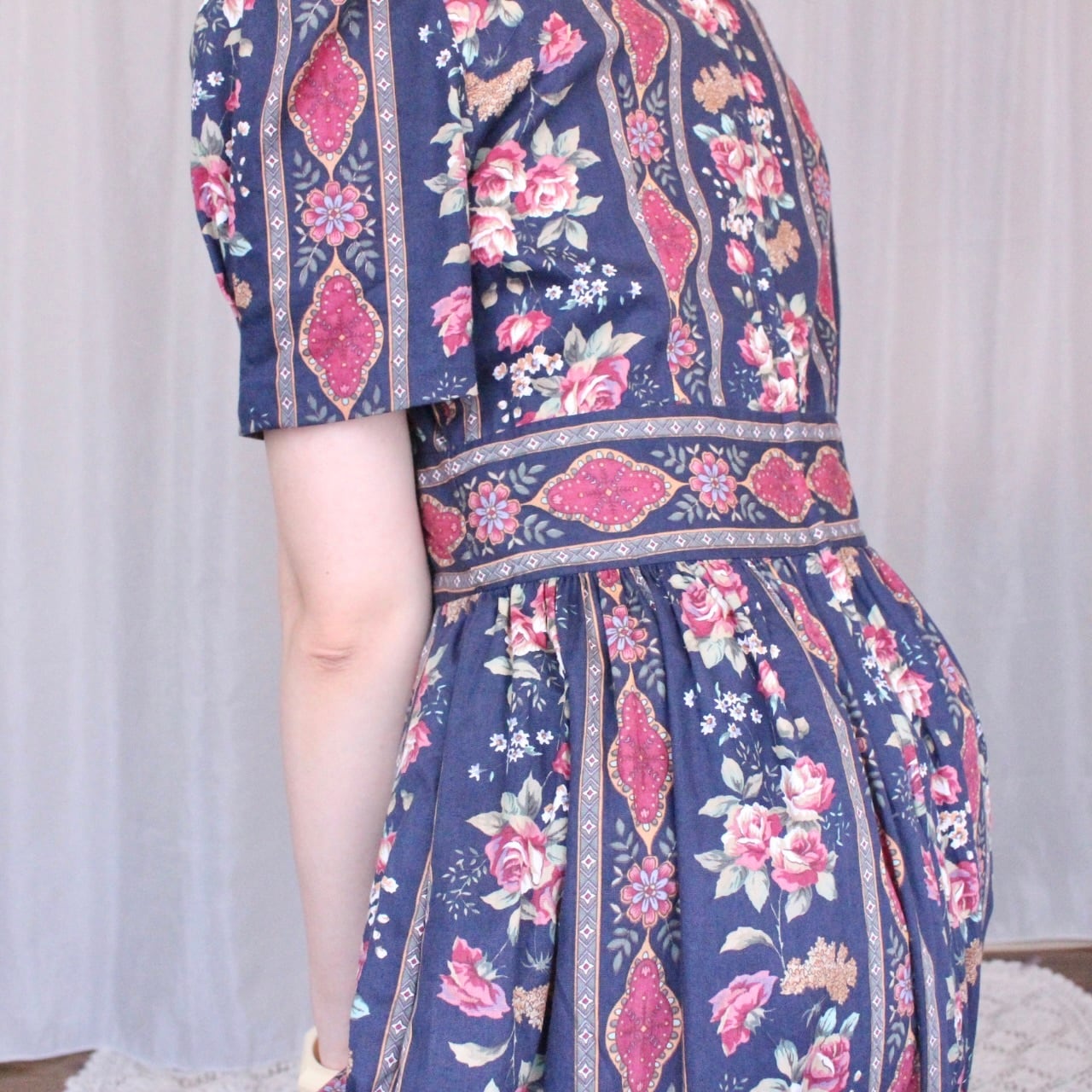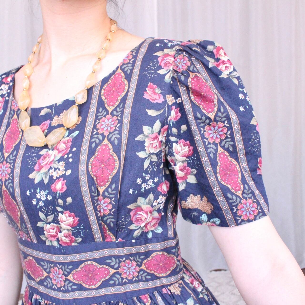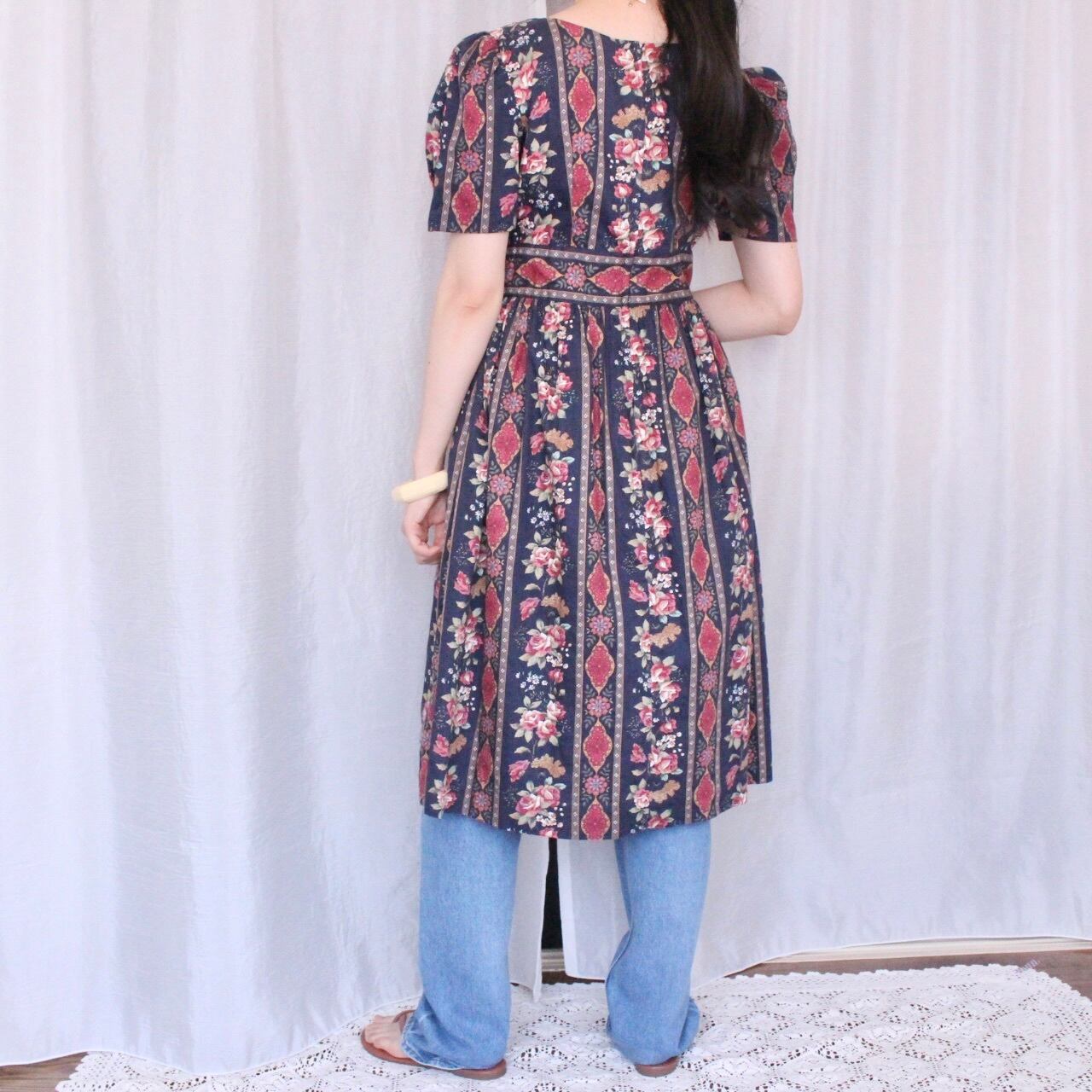 花柄ストライプワンピースネイビー【871】