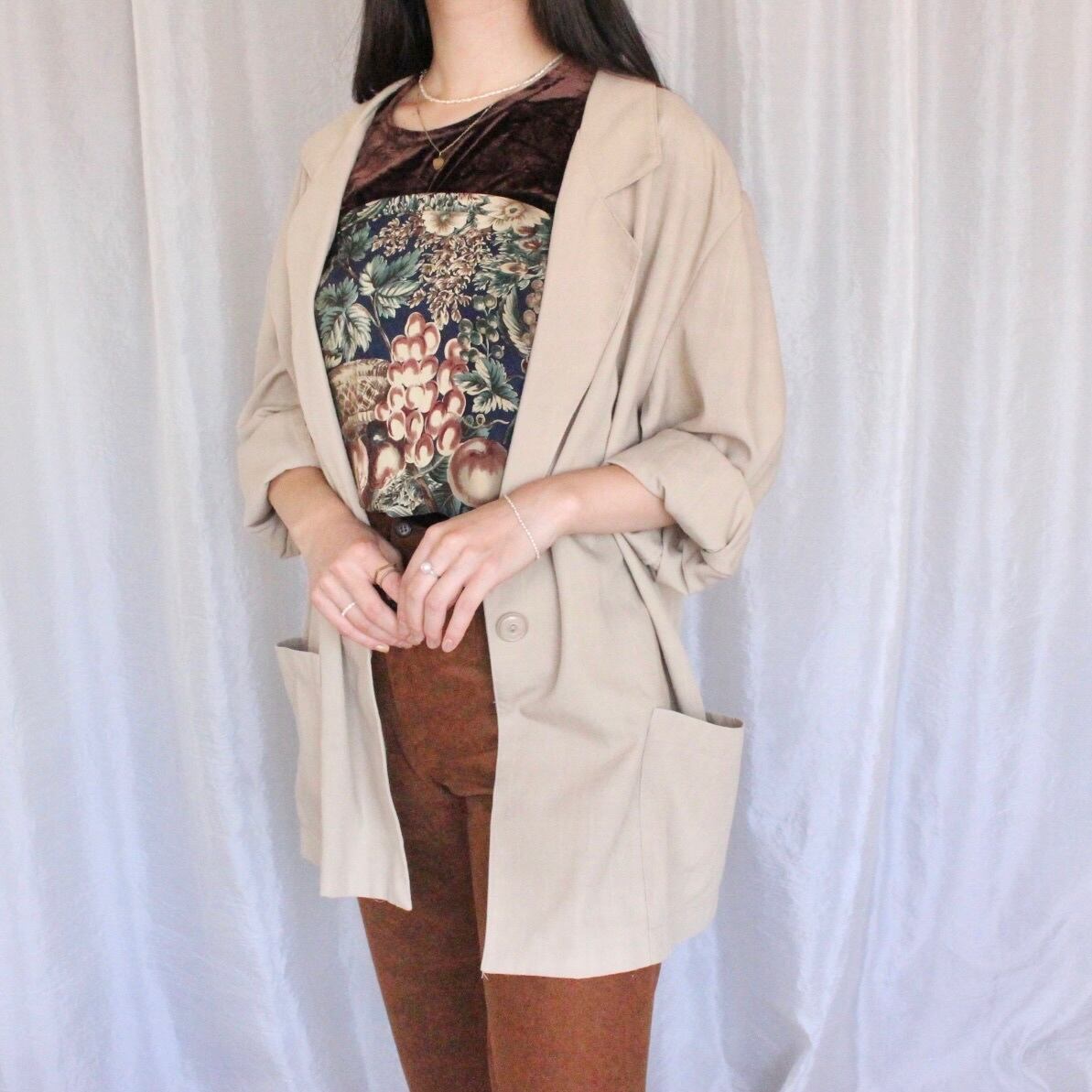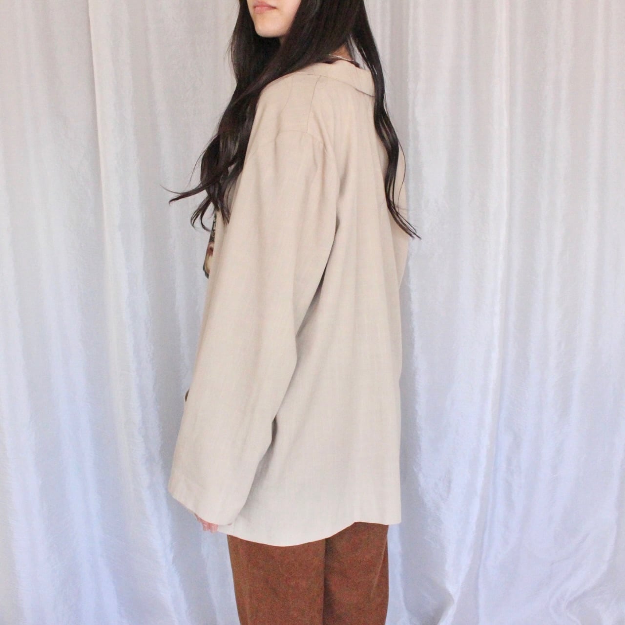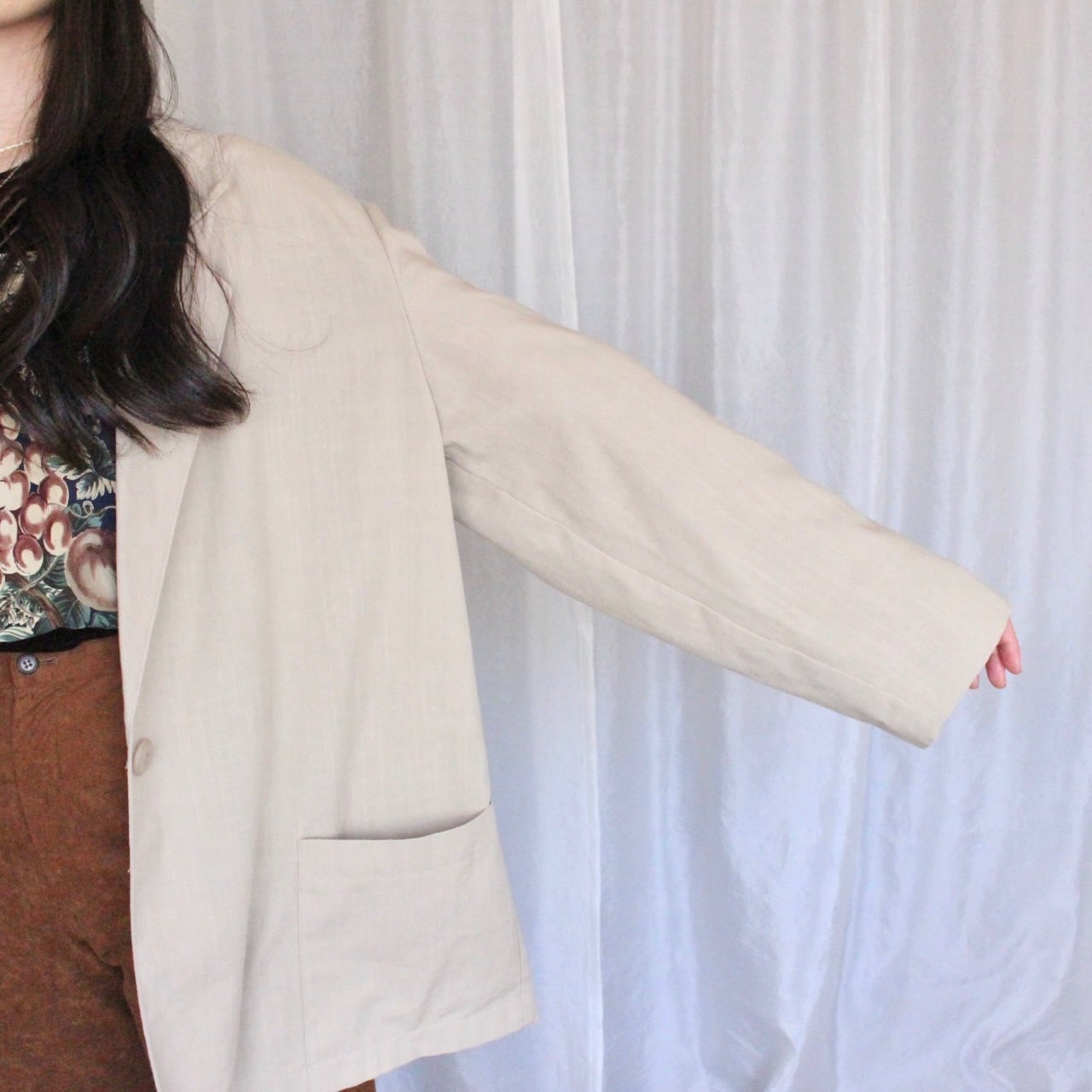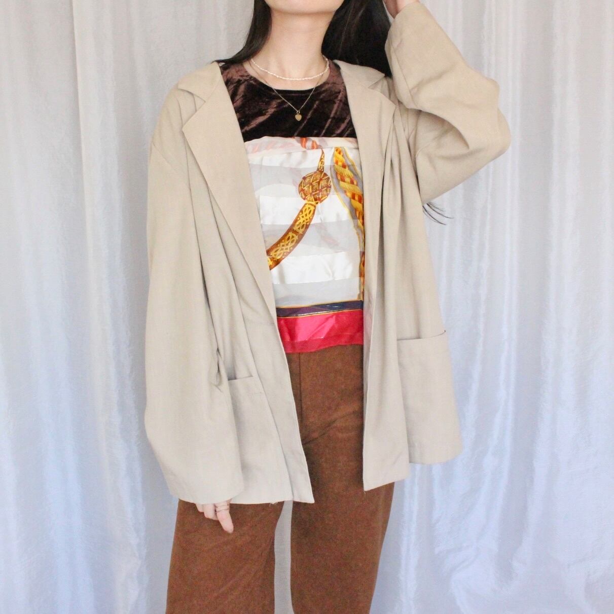 オーバーなサイズ感がこなれ感を演出してくれるベージュカラージャケット。