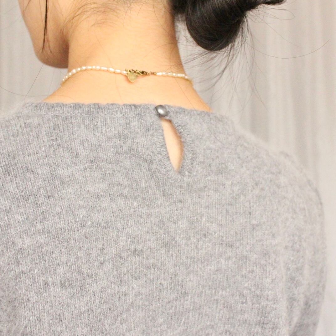 バックの襟ぐりのデザインも大人っぽい雰囲気の中に可愛らしさを感じるギャップですね。