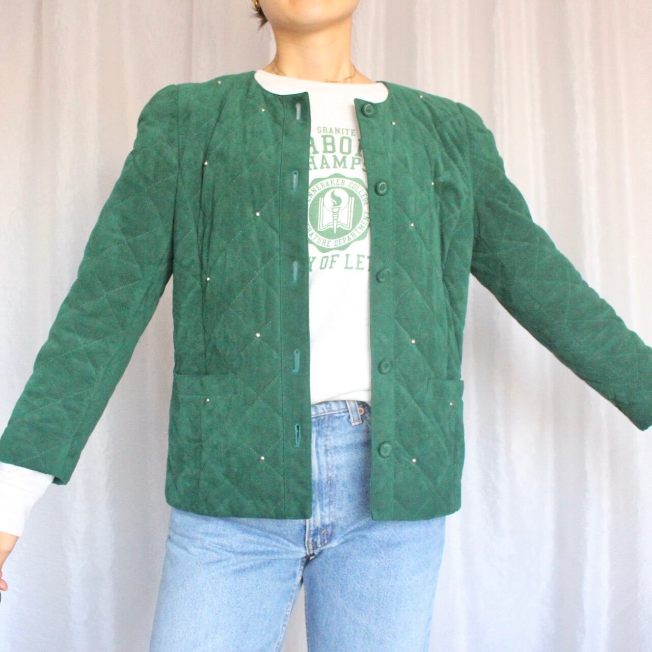 フェイクスウェードキルトジャケット グリーン【829】