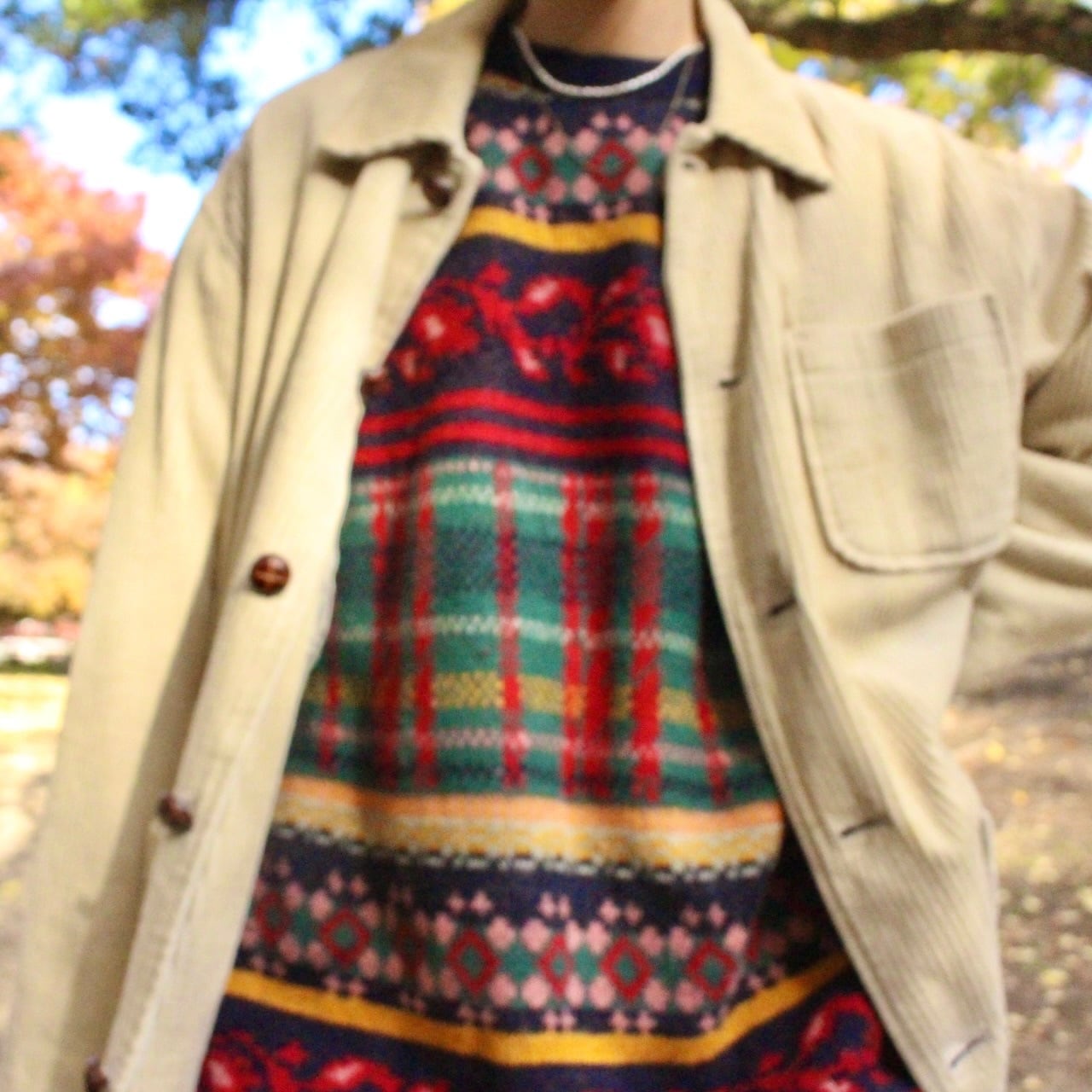 柄物と合わせたい場合は、ニットの大柄に対して細かい柄物を合わせると馴染むかと思います!