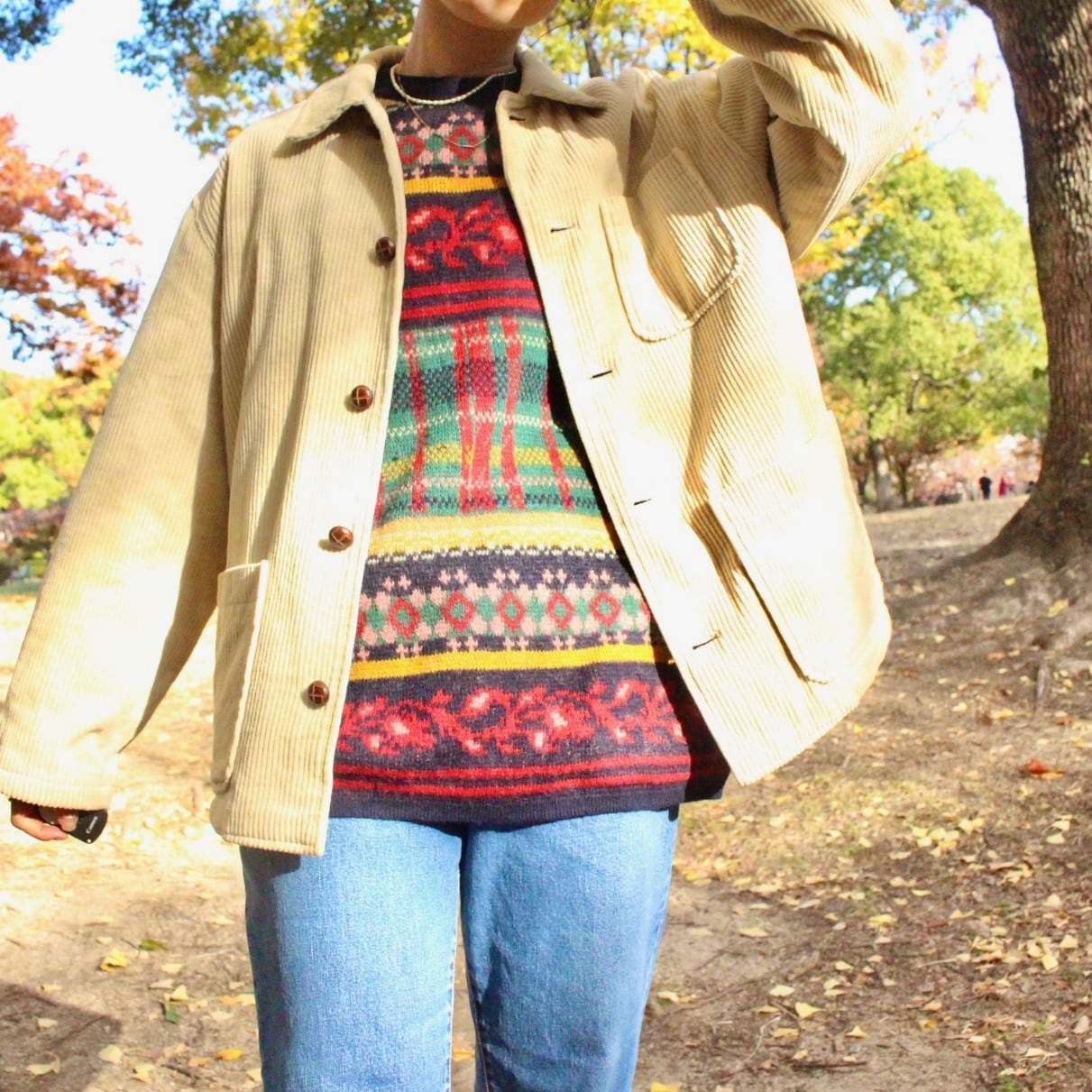 一着でしっかり個性が出る魅力がたっぷりなアイテムなので、ボトムスはシンプルに無地を持ってくるのがいいかなと思います。
