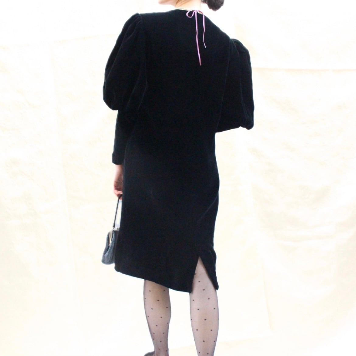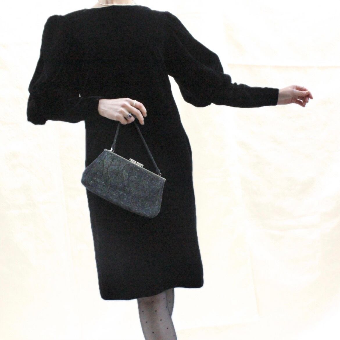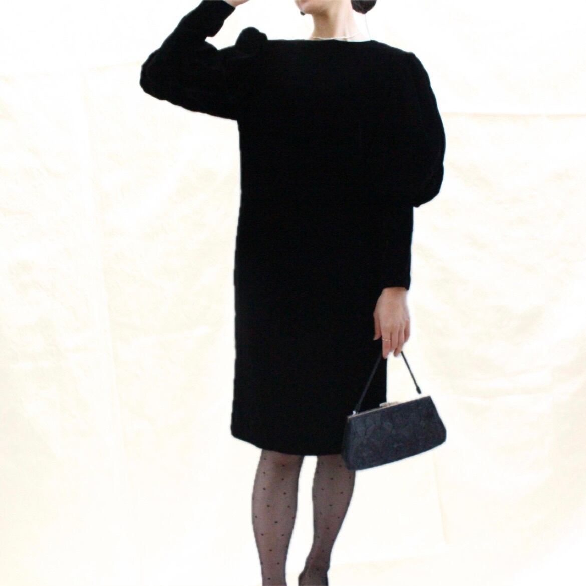 パフスリーブベロアドレス ブラック【1062】