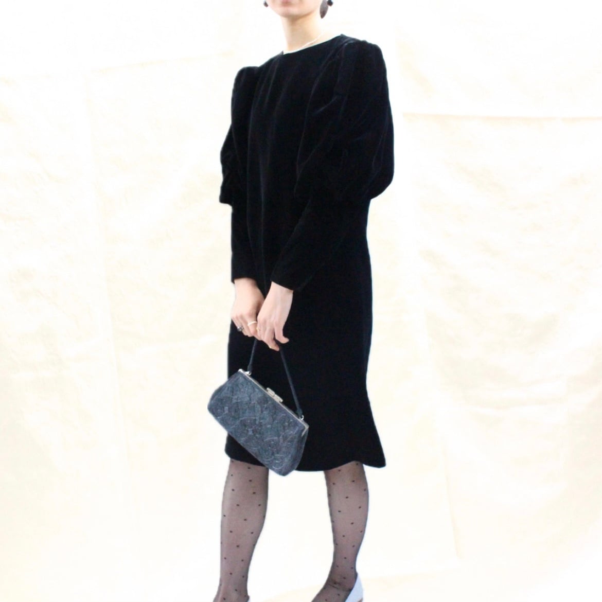 アクセサリーやバッグにきらっと光を入れるとベロアの光沢をさらに引き立ててくれるので、私は好きでした!
