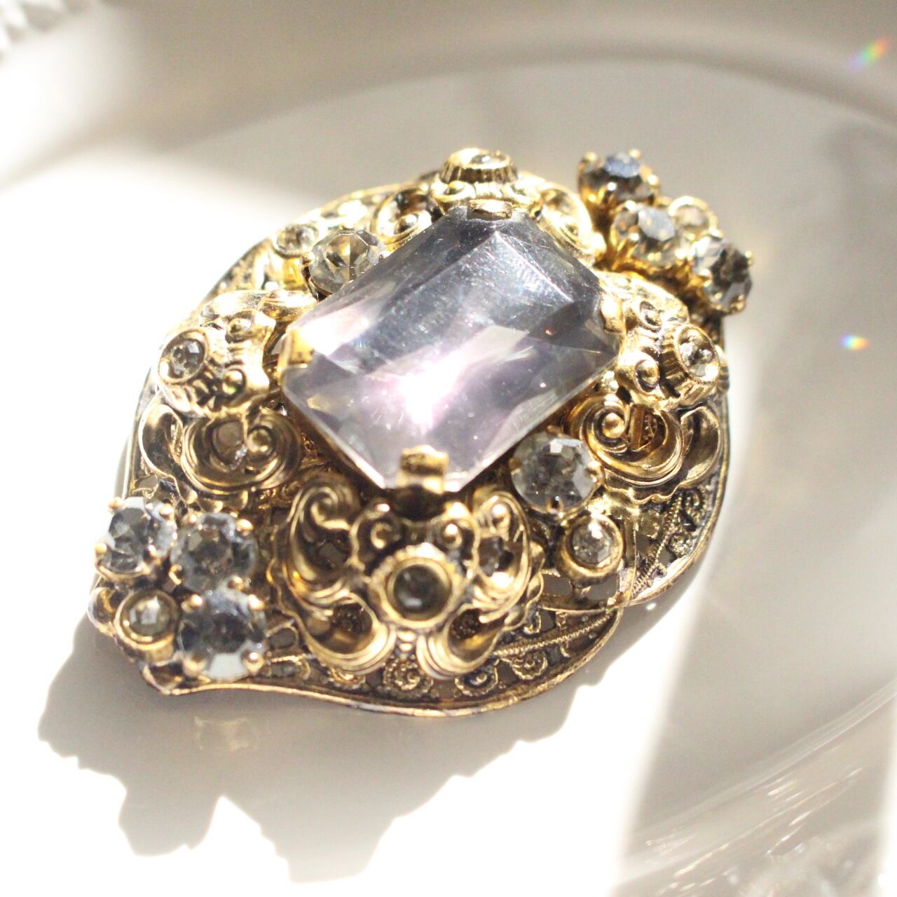 大ぶりでコーデの主役になるほどの存在感なので、あえてコーデをワントーンにしたり、柄物をブローチから遠ざけて、ブローチをより際立たせるのも良いかと思います。
